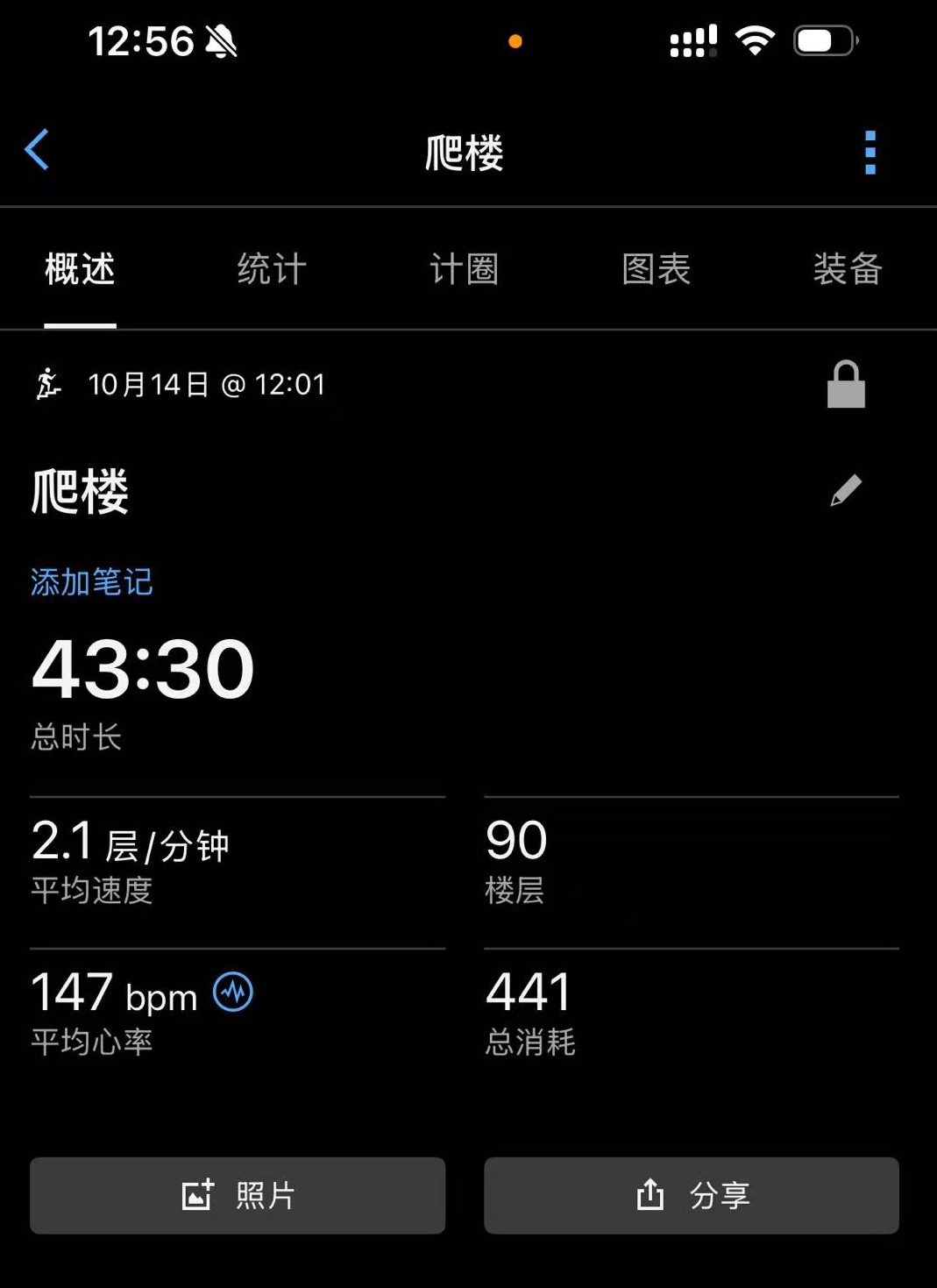 10月14日,康康爬楼时APP记录的信息。
