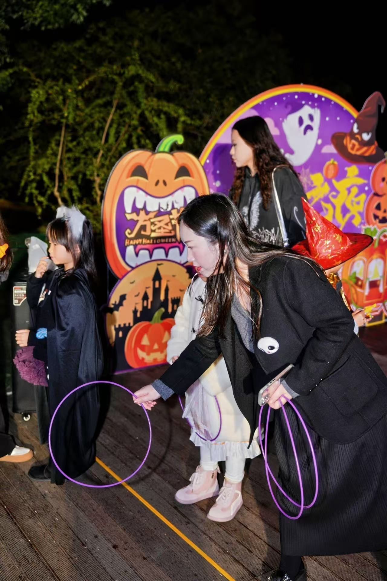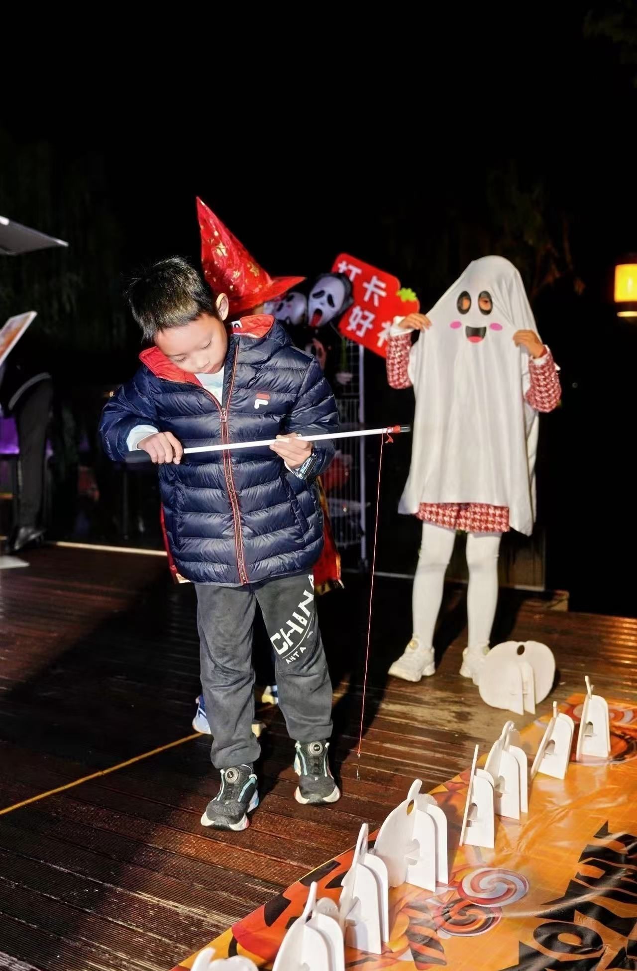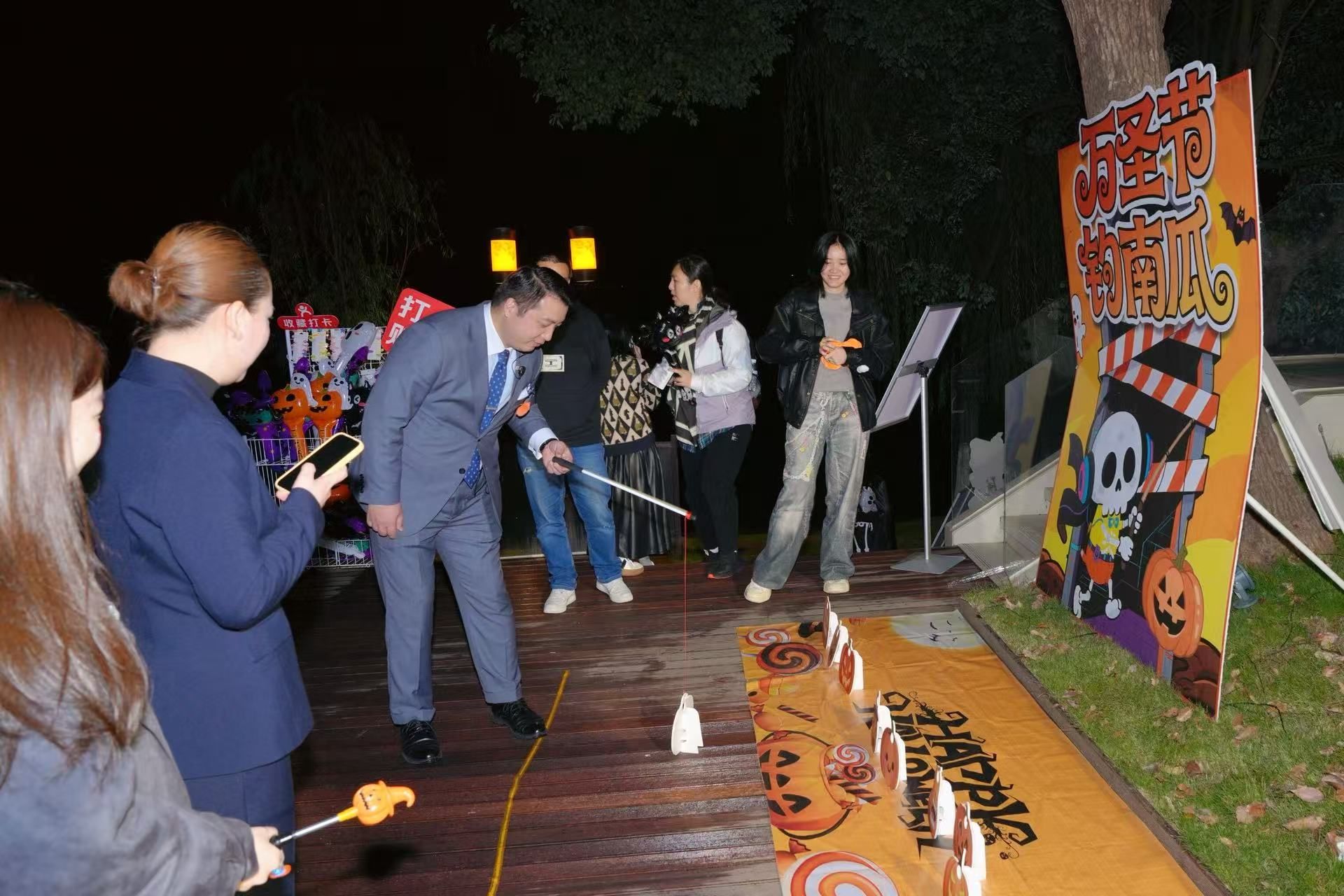 记者在现场看到,各色卡通主题抱枕、玩偶、糖果、荧光棒琳琅满目,一字排开。宾客可现场领取集章手册,通过游戏通关的方式,完成“魔法学徒修行”,赢取精美礼品。宾客向南瓜“嘴”里丢沙包,被赋予“降服邪祟”的美好寓意;钓南瓜区域充满童趣,孩子们手持特制鱼竿钓起漂浮的迷你南瓜;套“捣蛋鬼”游戏则是许多人的儿时回忆,现场欢笑声不断。