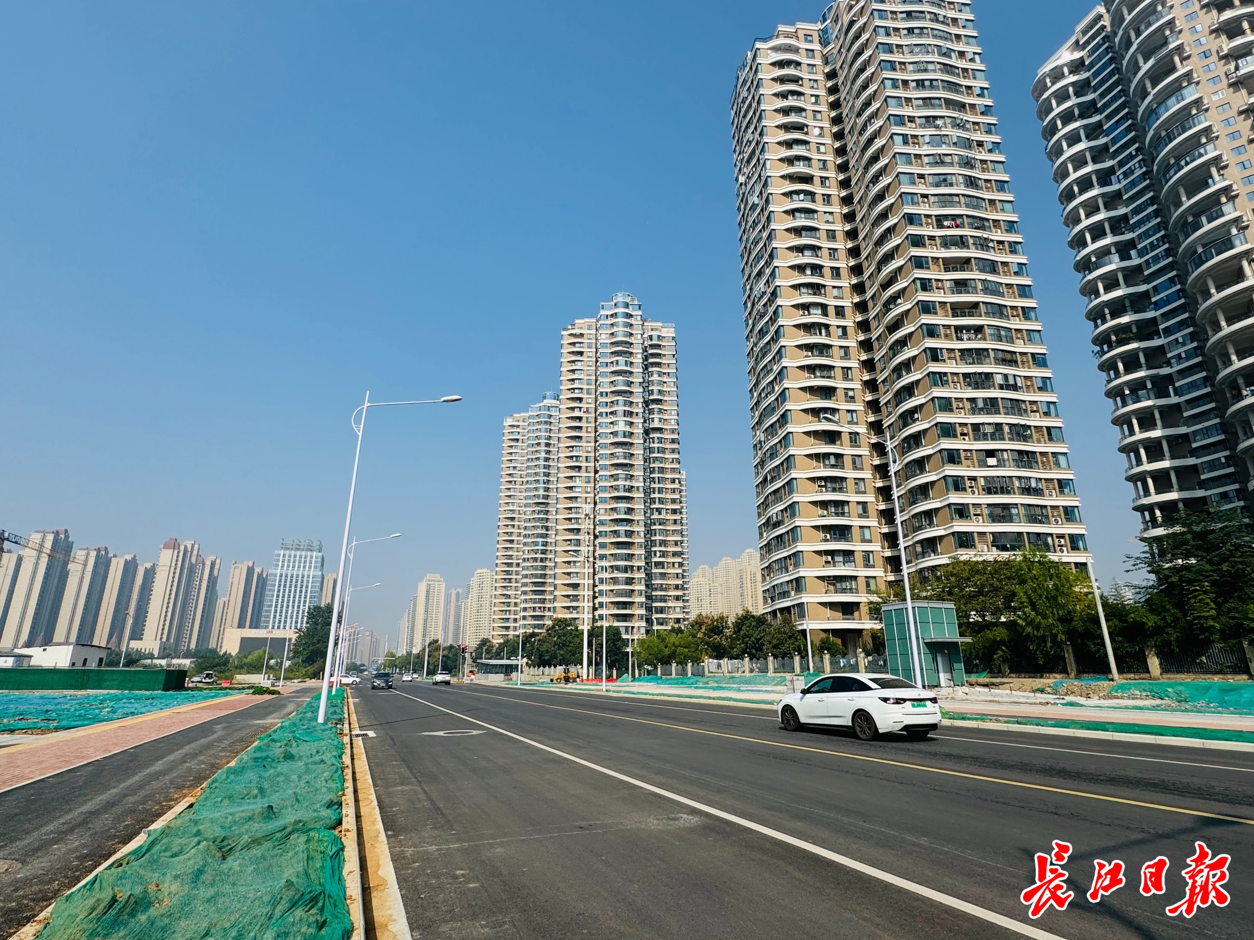 施工方市政集团隧道公司项目经理林明伟介绍,园林路(团结大道—丰福路)长约300米,采用双向六车道,两侧设有非机动车道、人行道和花坛。此次还路对原混凝土路面全面提档升级,改造为平整耐用的沥青道路。记者注意到,预留的公交站台、人行道均进行降坡处理,实现无障碍通行;花坛覆盖绿网,将在气候适宜季节栽种树木绿植。
