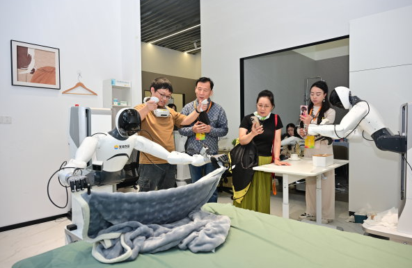 湖北人形机器人创新中心,机器人正在学做家务。前三季度,武汉工业机器人产量激增70.4%。刘康 摄