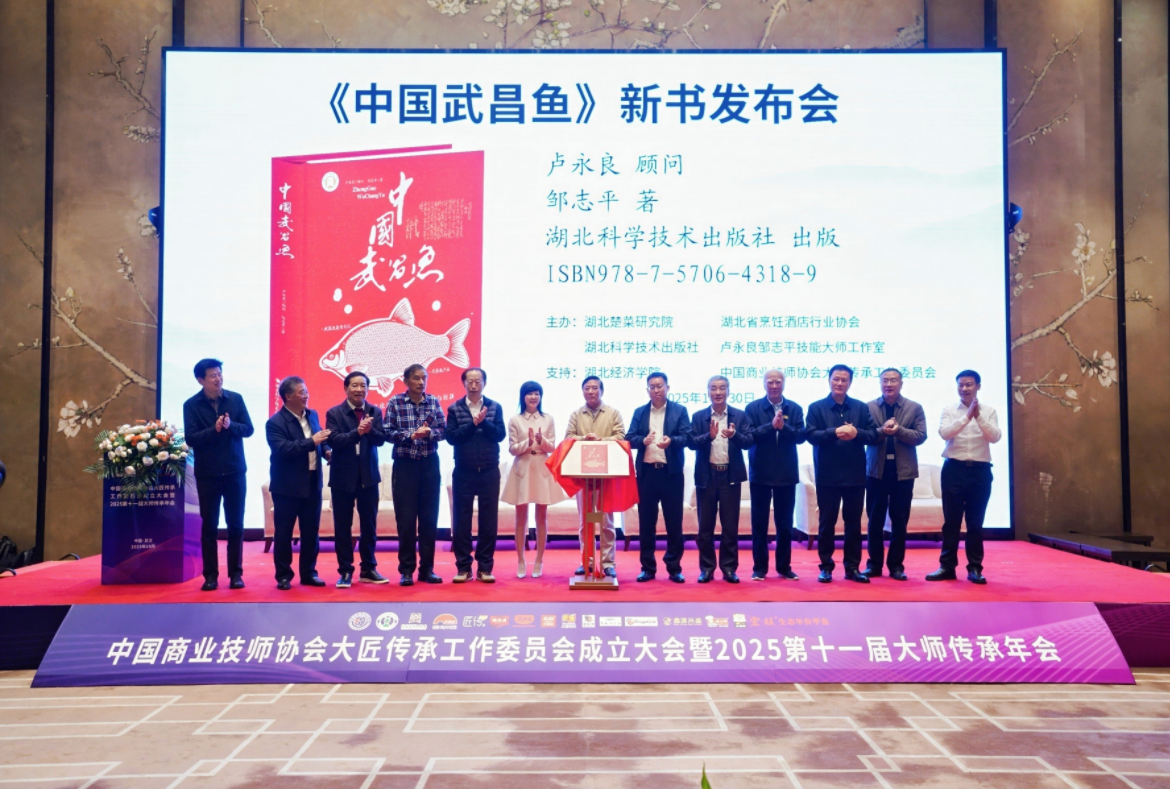 长江日报大武汉客户端10月31日讯(记者刘克取 通讯员李加红)日前,楚菜美食文化节在武汉举办,现场,一本以“中国红”为底、承载千年鱼香的《中国武昌鱼》正式亮相。这部由湖北经济学院教授、湖北楚菜研究院院长、中华技能大奖获得者、武汉工匠邹志平撰写的新作,不仅是一条鱼的传记,更是一部以食材为媒、传承楚菜文脉的匠心实录。