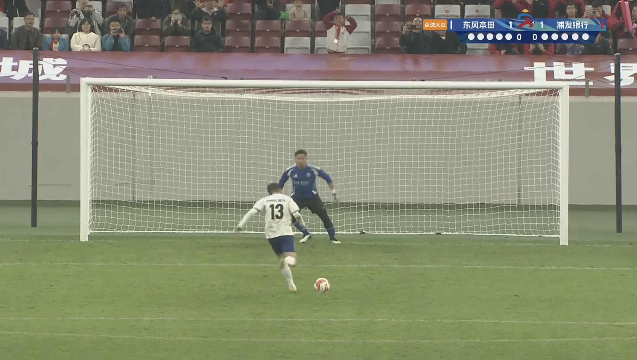 比赛最后1分钟,浦发银行完成关键进球,1:1平。比赛进入点球大战,浦发银行4罚3中,东风本田5罚2中。