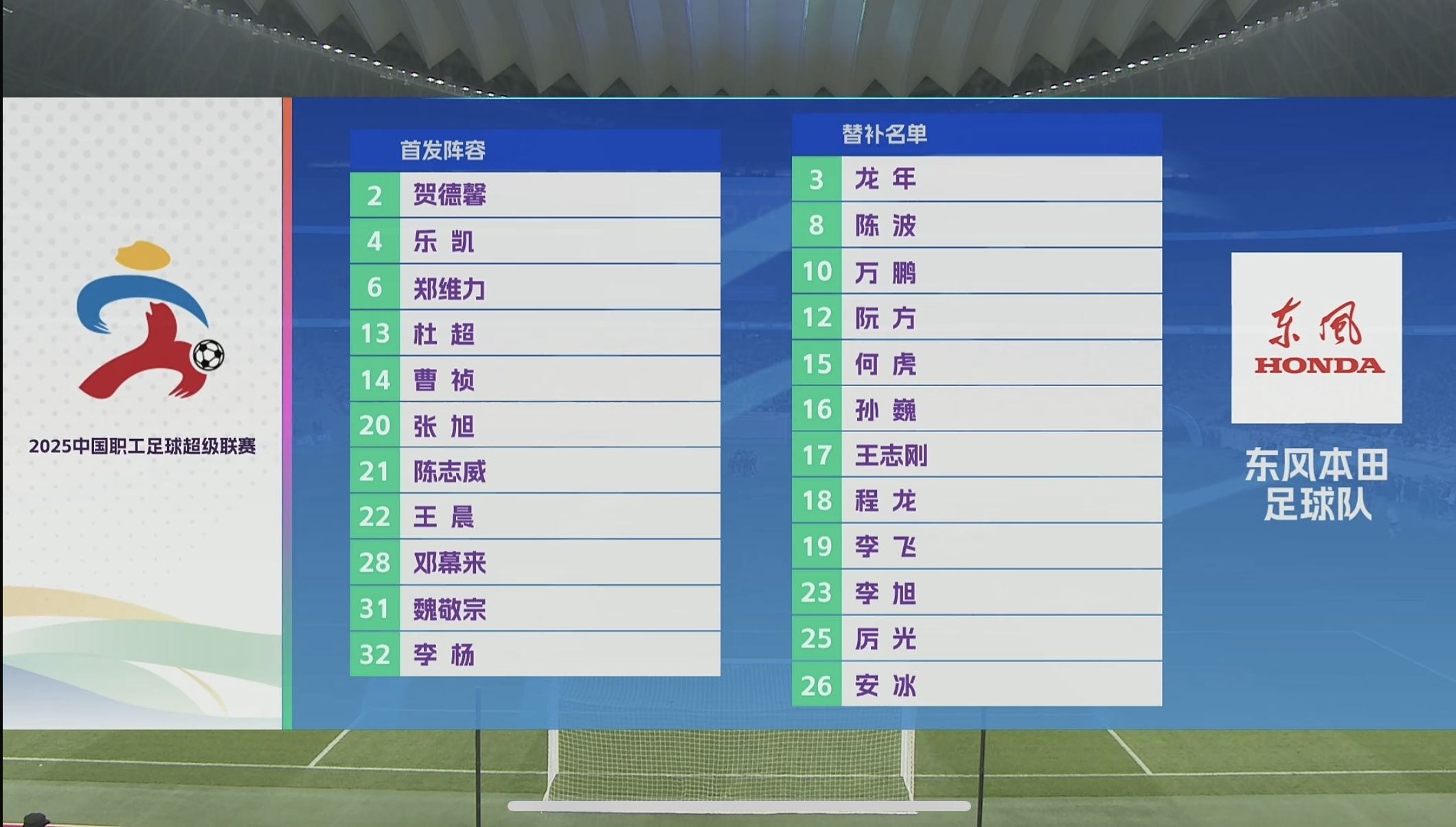 东风本田足球队名单。直播截图。