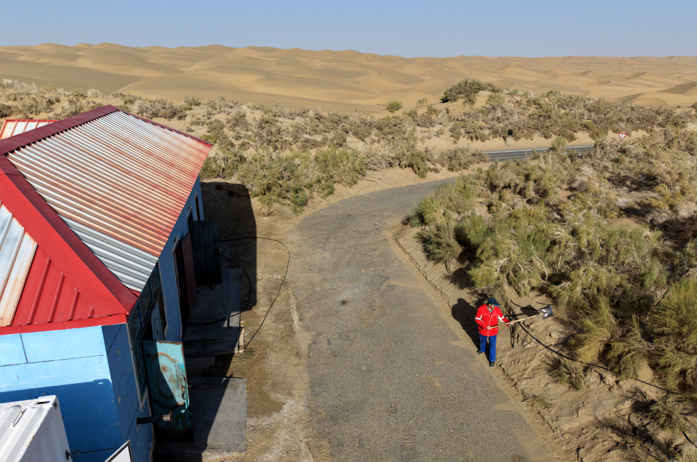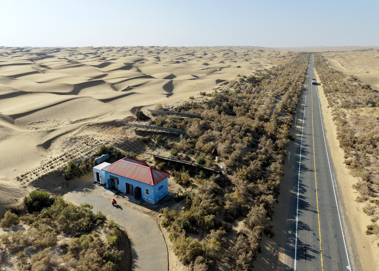 为了不让公路被流沙掩埋,在公路修通后,道路两侧的防沙固沙工程也随即展开,而为了守护这来之不易的绿色屏障,一群特殊的“守护者”常年驻守在大漠的深处。