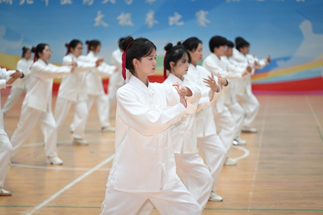 近日,该校第四十四届运动会太极拳比赛刚刚落幕,来自13个学院的1000余名学生同台竞技。而从竞技赛场到每日晨练,太极拳已从一项传统体育项目,逐渐发展成为校园文化的亮丽品牌。