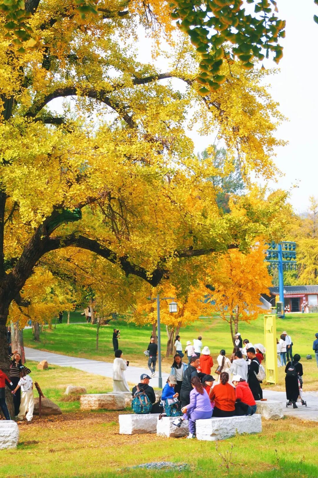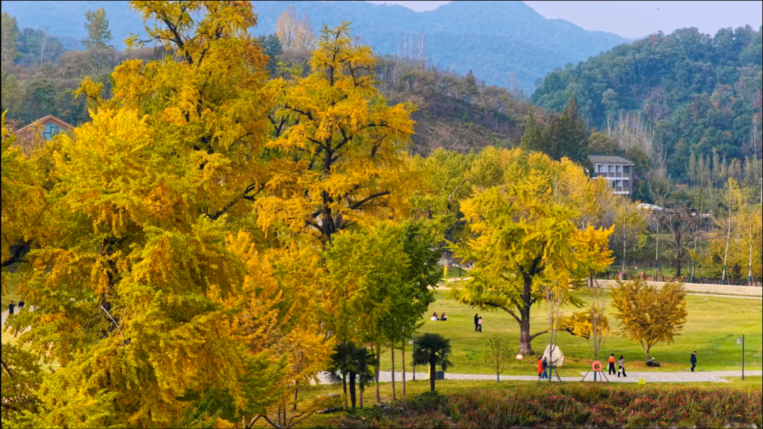 漫步银杏谷景观道,雾森系统喷出的薄雾令人流连忘返。千年银杏撑起金色华盖,秋风拂过,金叶翩跹而落,为青石小径铺就绚烂的地毯。这幅秋日长卷在山水间徐徐展开:相拥而立的“五老树”相守着千年秘密,高耸云端的长寿塔让人乐享静谧,编钟演绎馆传来的千年雅乐令人心旷神怡,银杏博物馆诉说着千年往事……这个融自然景观与人文底蕴于一体的风景区,悄然成为网红打卡地。