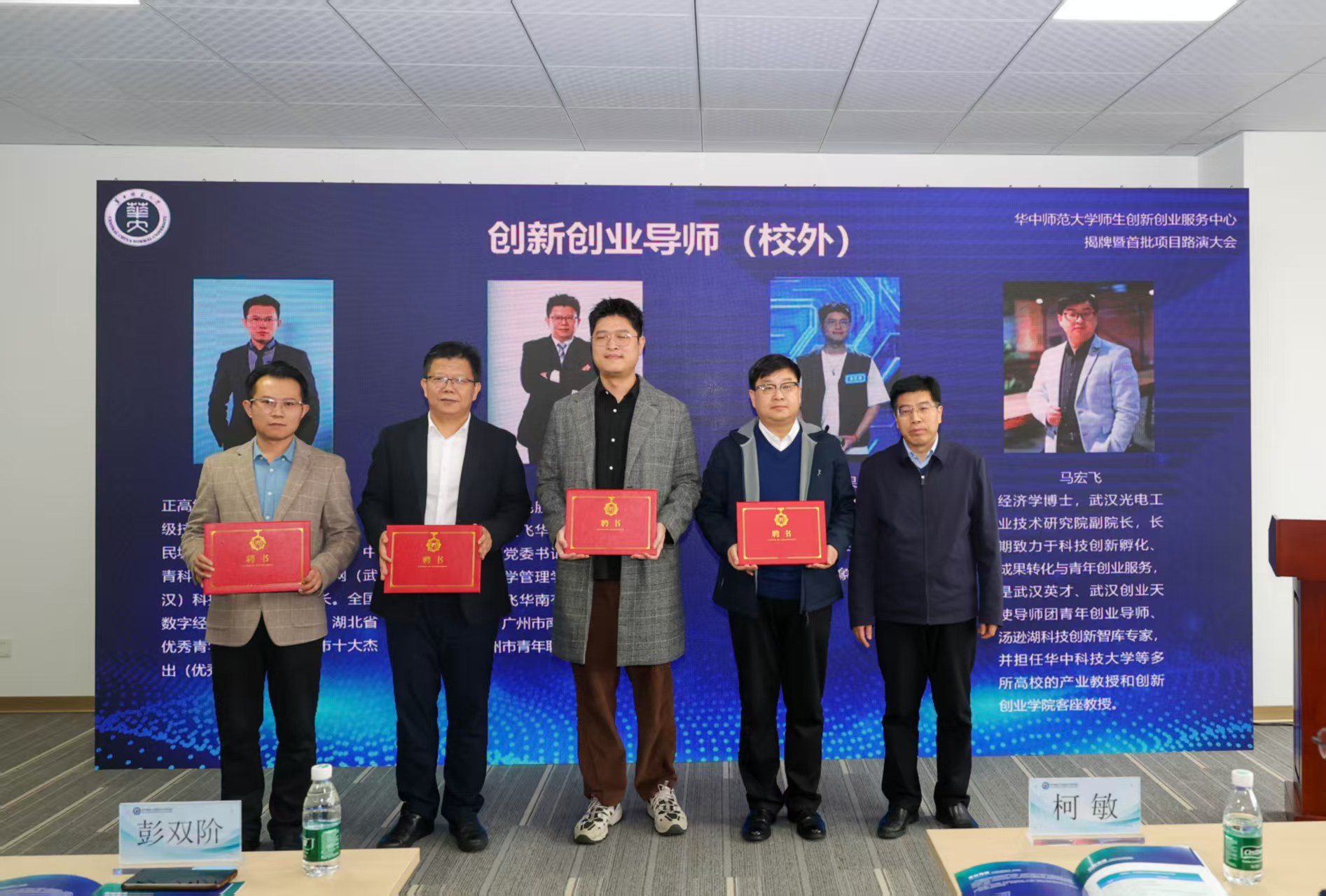 彭双阶校长和刘三女牙副校长先后为8名校外导师、7名校内导师共15人颁发华中师范大学首批创新创业导师聘书。首批聘任的校外导师涵盖校友企业家、人工智能龙头企业家(科大讯飞副总裁、讯飞华中总经理)、本土创意企业家(“蒜鸟”创始人)以及多位法律、财税、投资、政策专家,将与校内创新创业导师优势互补,共同建立“科学家+企业家”双导师赋能机制。