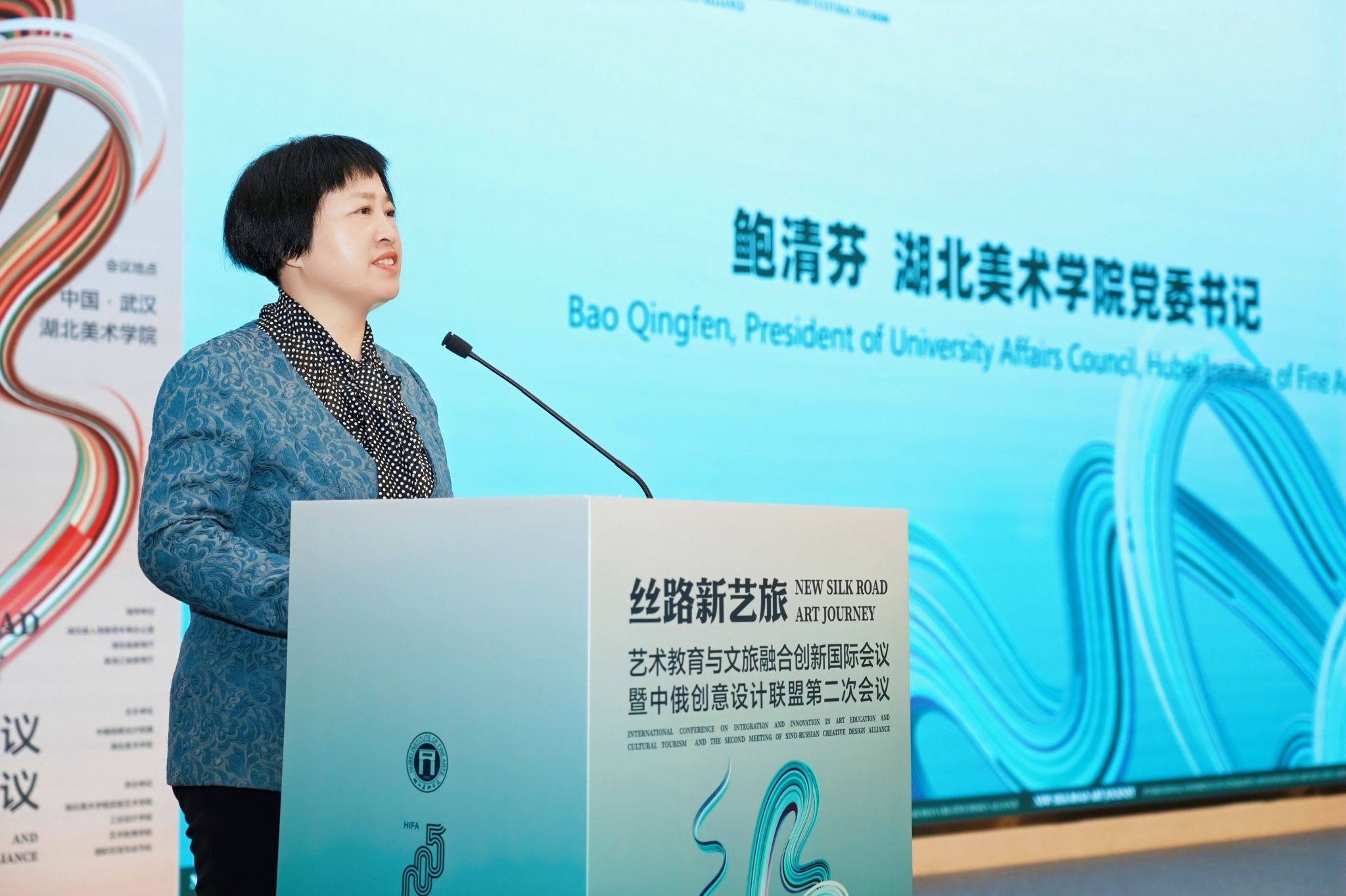 开幕式上,湖北美术学院党委书记鲍清芬表示,学校依托Cumulus国际设计联盟、中俄创意设计联盟等平台,已初步构建“丝路艺术教育合作网络”。她期待以此次会议为契机,深化中外高校在学术、创作与产业层面的协同,探索艺术服务文旅融合的新范式。