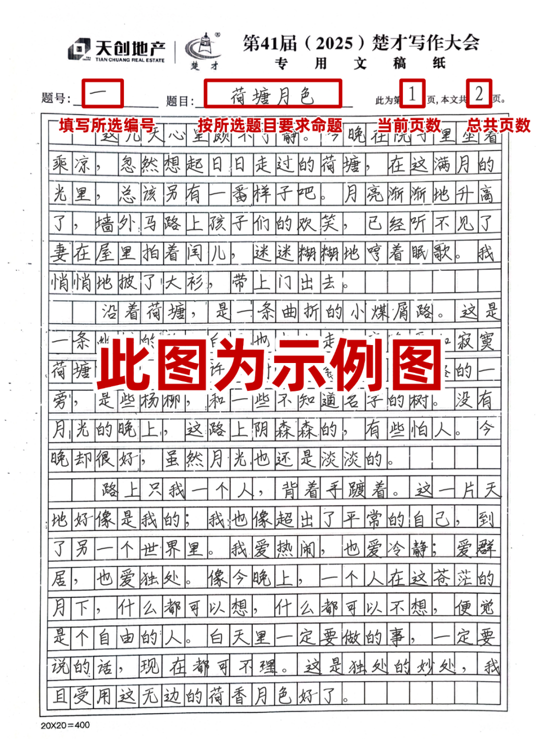 写作完成后再进入“楚才少年”微信小程序,按照页面提示上传作品图片。(提交作品通道将于11月22日开启)