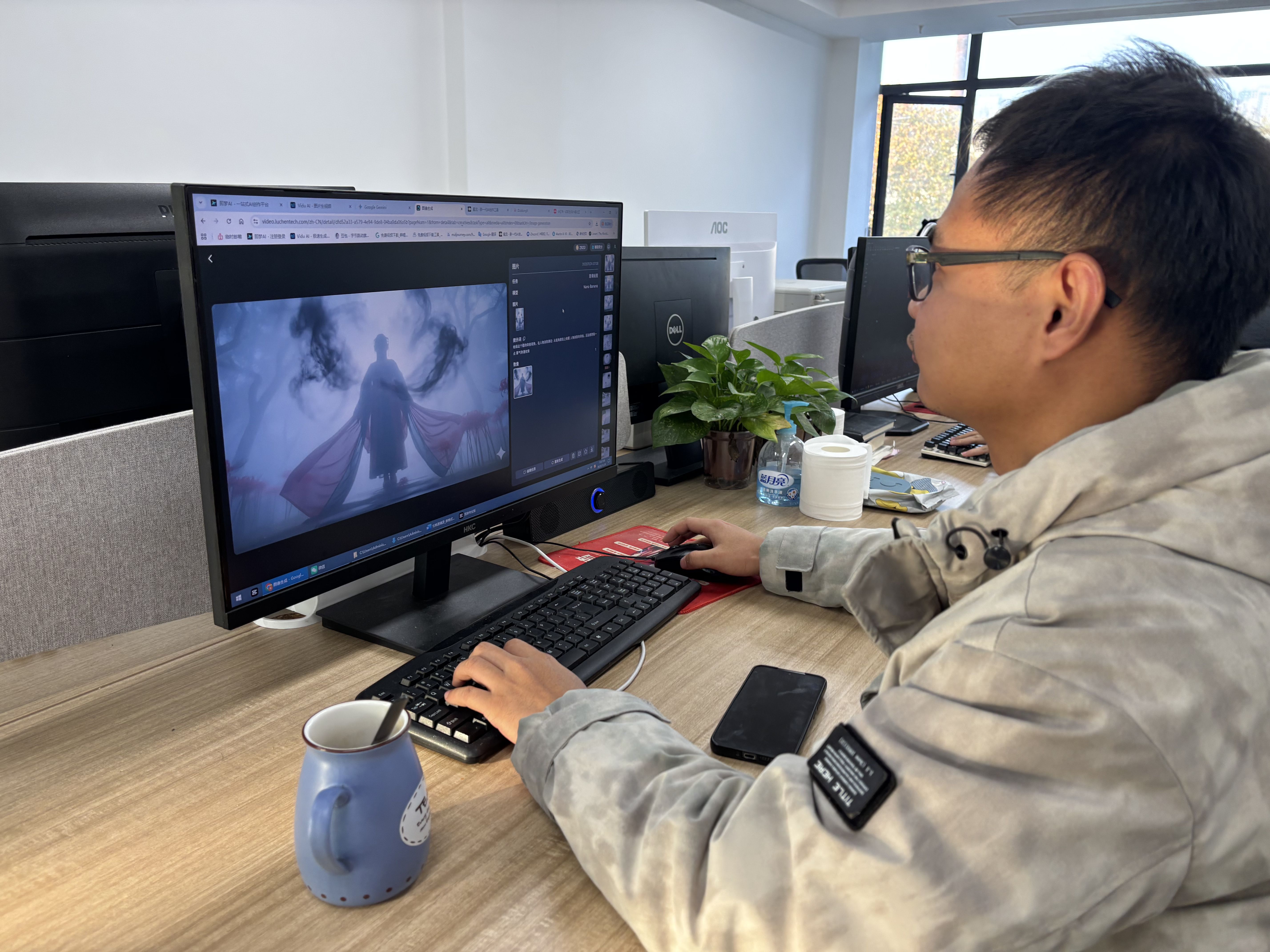 公司生成式人工智能动画制作员正在利用AI生成影视画面。栾嘉雯 摄