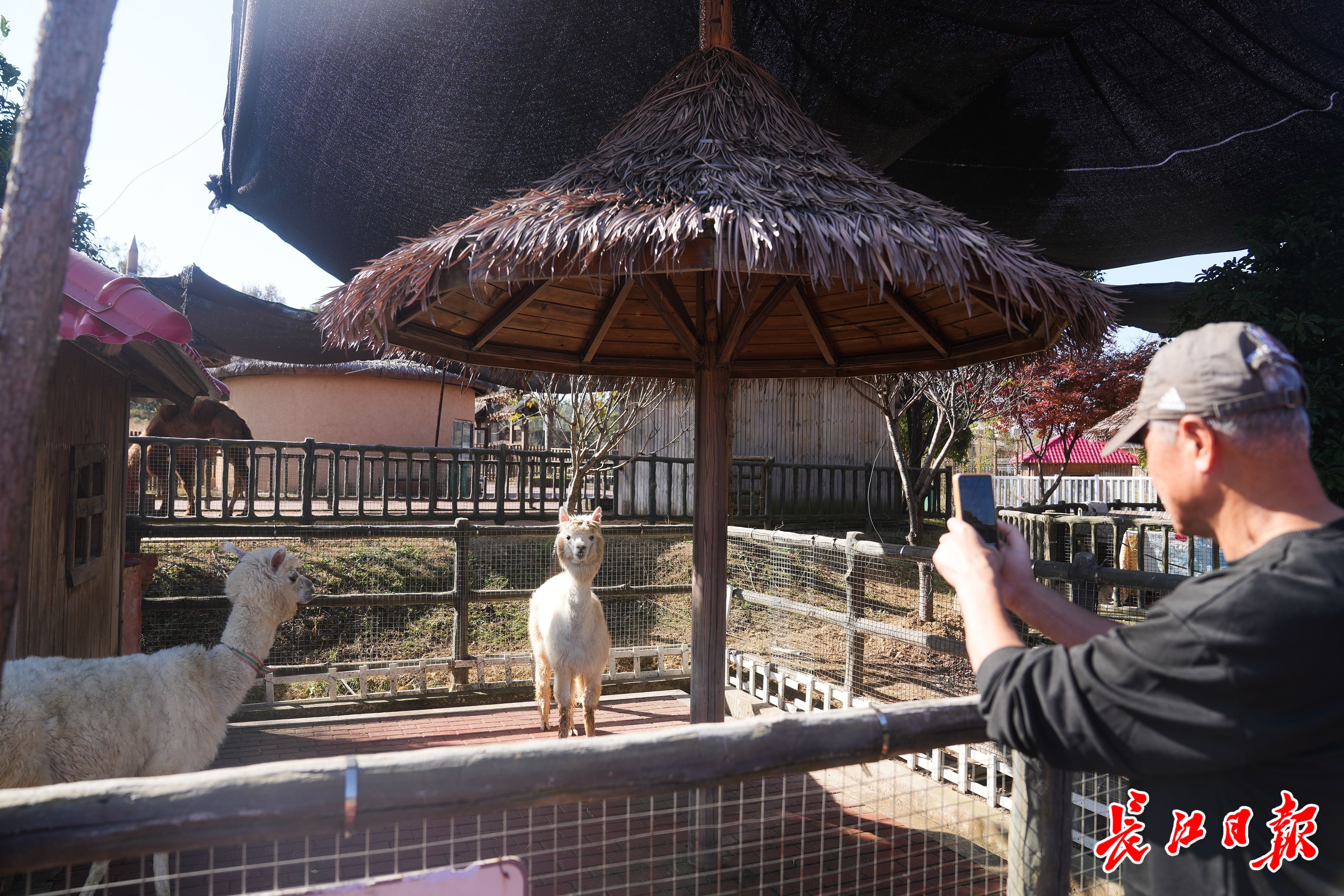 车友在拍萝卜公社里的羊驼。记者彭年 摄