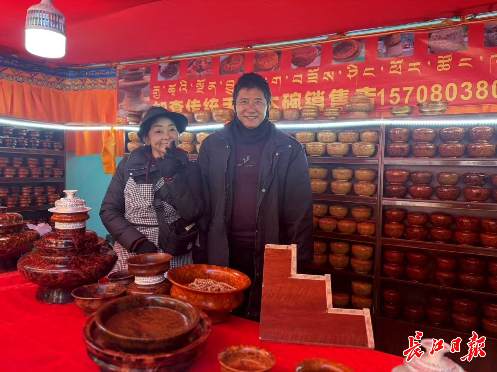 边巴次仁和妻子销售的是藏族同胞喝茶用的木碗。长江日报记者蔡欣星 摄