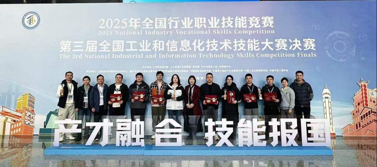 近日,2025年全国行业职业技能大赛——第三届全国工业和信息化技术技能大赛在重庆落下帷幕。武汉城市职业学院代表队一举夺得大赛工业互联网创新应用赛项职工组(含教师)、学生组双冠军,智能网联新能源汽车赛项职工组(含教师)与学生组双二等奖,同时荣膺大赛 “冠军选手单位” 称号,创下该校参加该项赛事以来的最佳战绩。