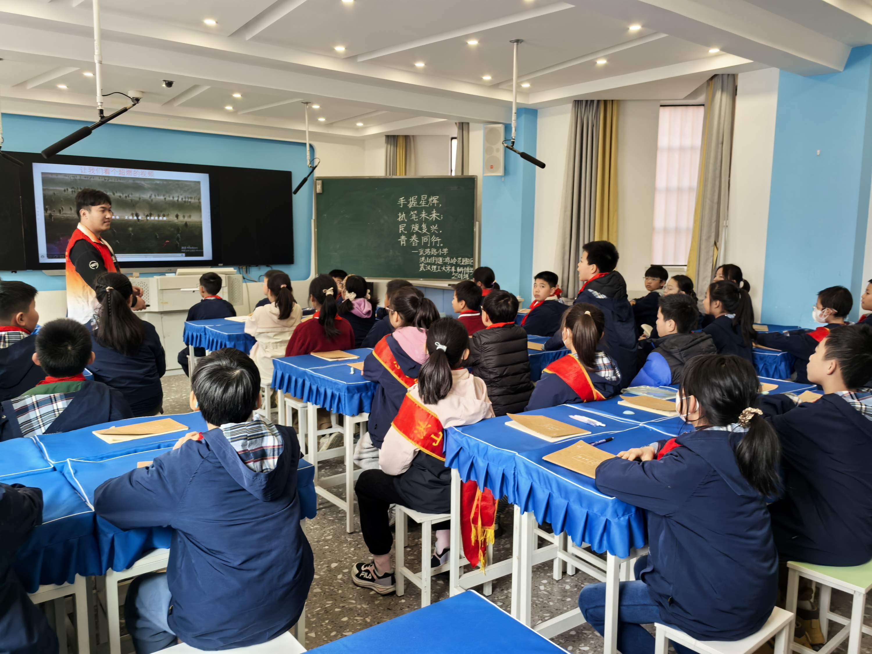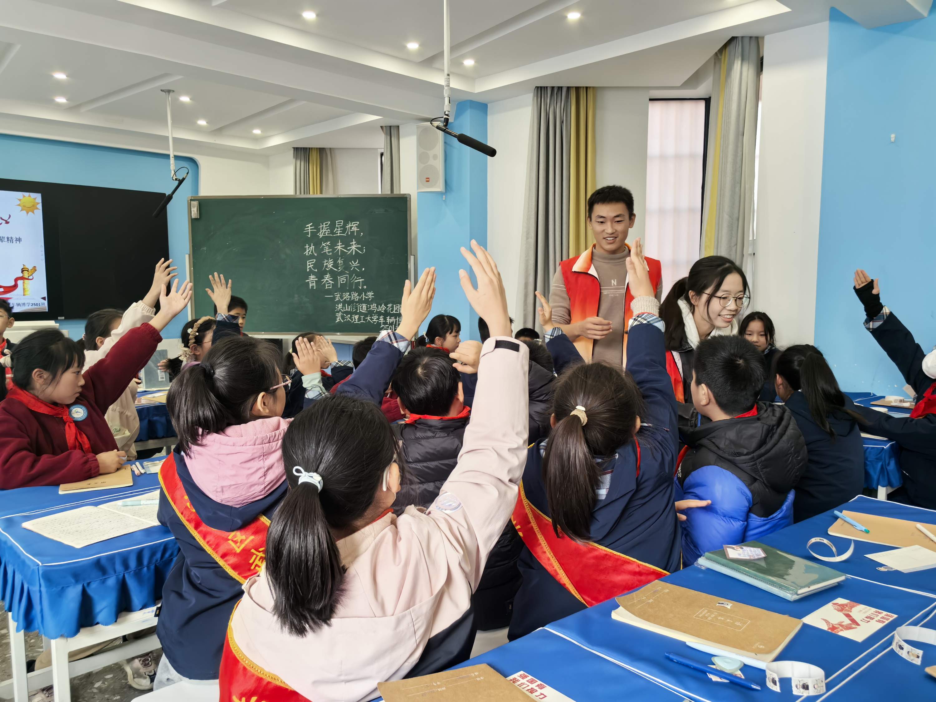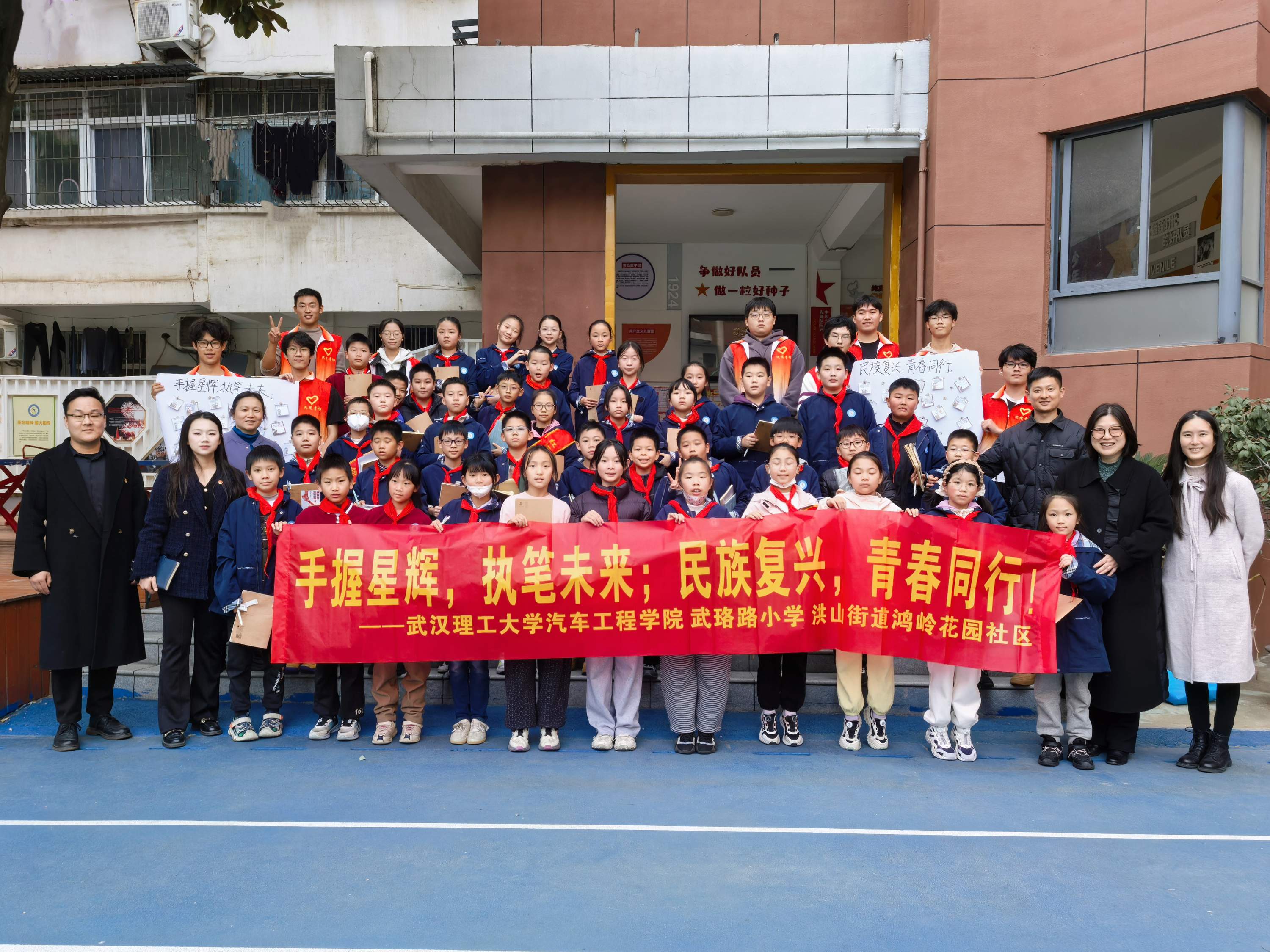 为推动红色资源与学校教育深度融合,引导广大青少年知史爱党、知史爱国,2025年12月11日,洪山区鸿岭花园社区党委携手武汉理工大学汽车工程学院,在武珞路小学共同举办了一场以“手握星辉,执笔未来;民族复兴,青春同行”为主题的红色文化进校园宣讲活动。