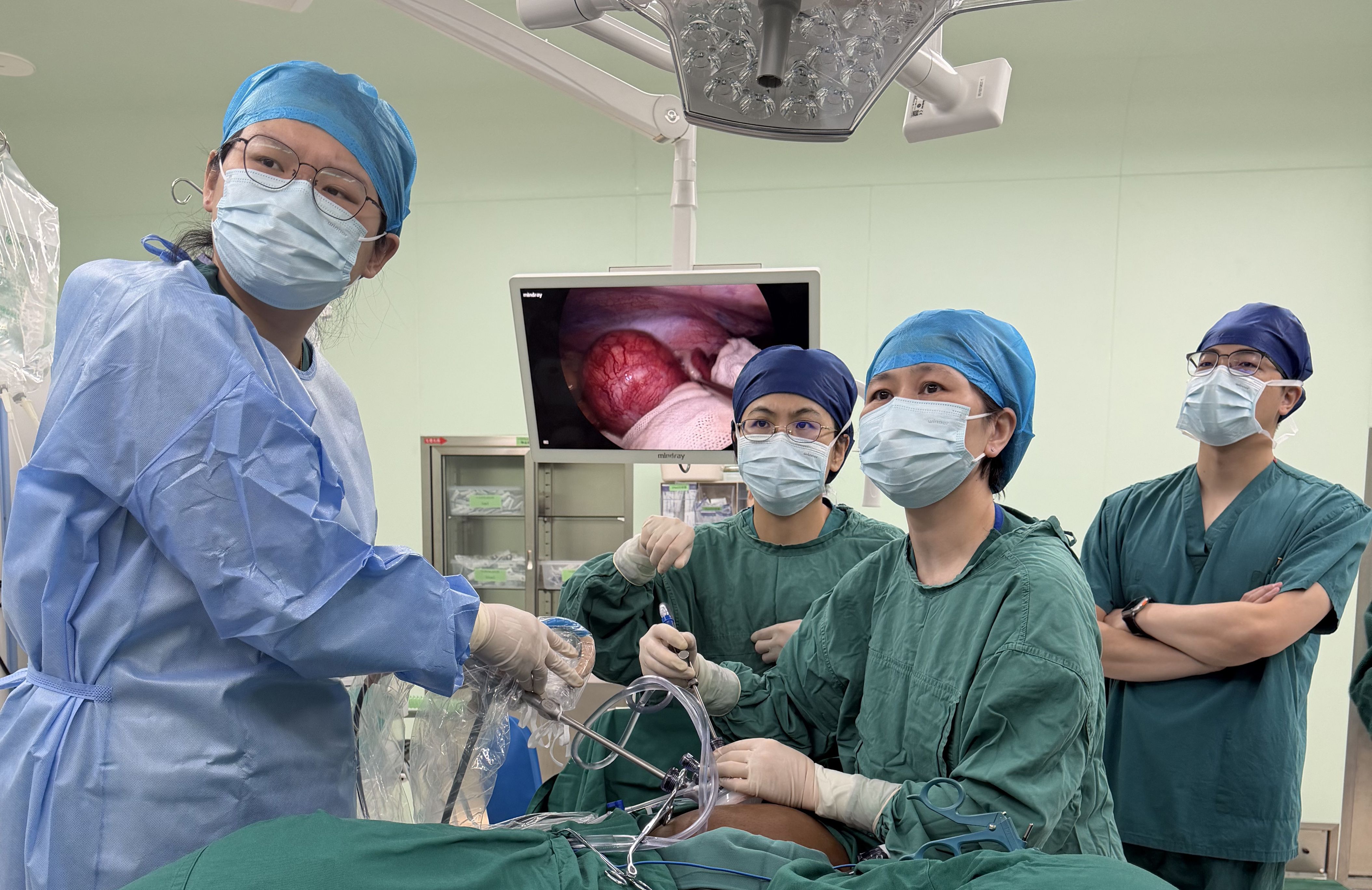 手术选择了创伤最小的单孔腹腔镜方案。黄燕明主任团队精准操作,成功切除直径8厘米的扭转肌瘤,完好保留了子宫及胎儿。整个手术过程中,孕妇的生命体征被严密监测,胎儿心跳始终保持稳定。