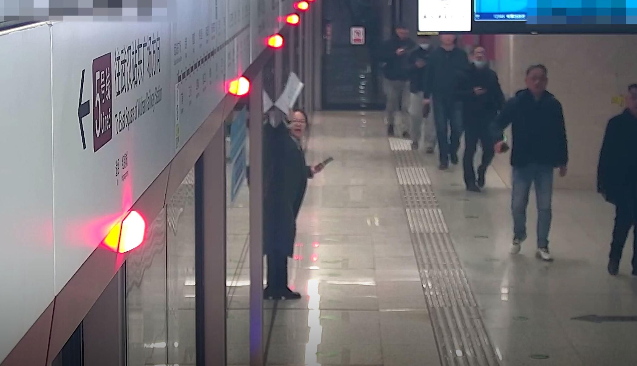 “有人晕倒了!”随着列车停稳,一位身着深色呢子大衣的女乘客冲出车厢,她高举文件向工作人员朱斯琪呼救。正在车头接车的朱斯琪闻讯后,迅速奔向事发车厢。