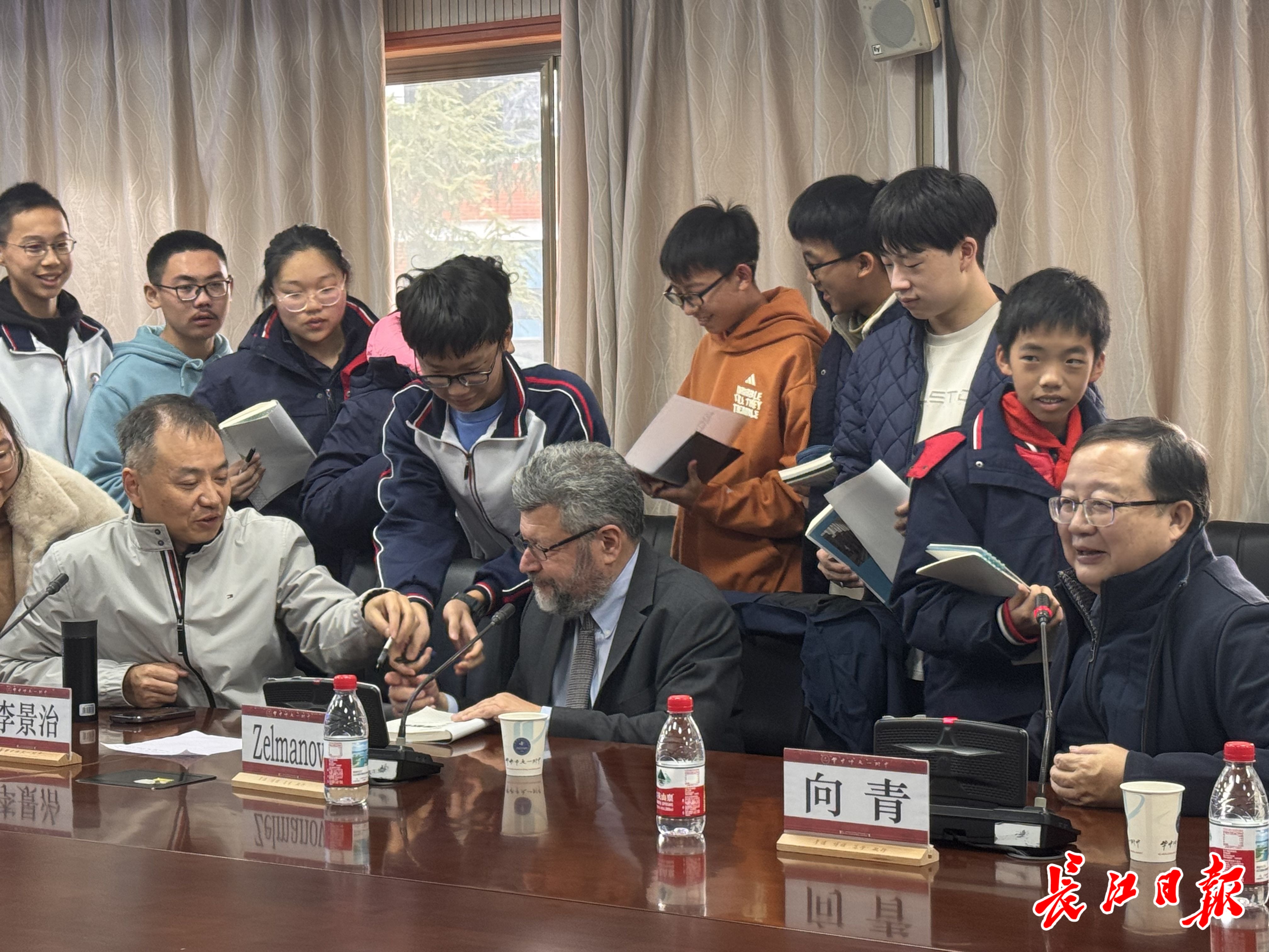 埃菲·杰曼诺夫教授与华中师大一附中学生交流。 记者杨枫 摄