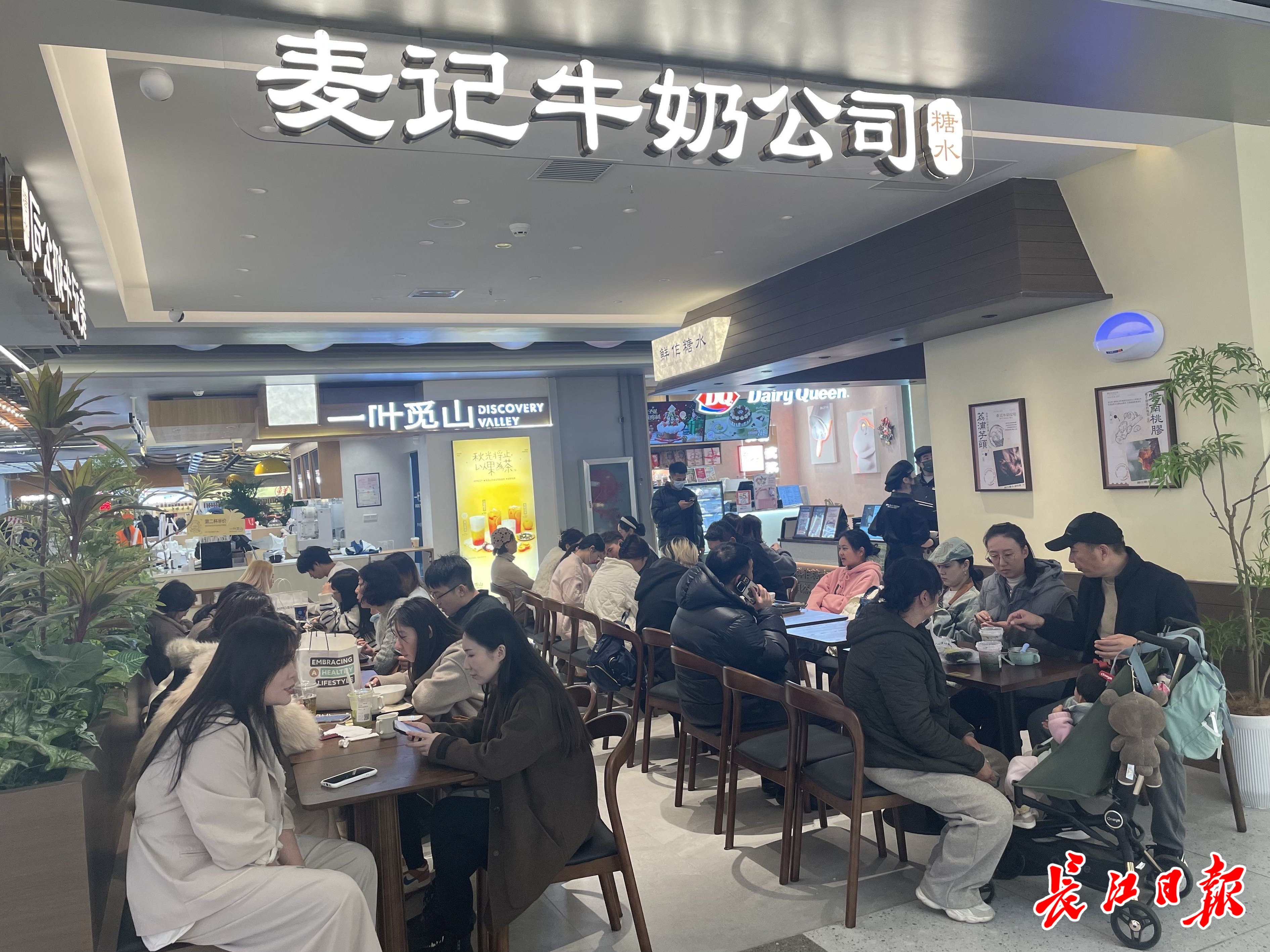 武商梦时代麦记牛奶,顾客们点杯糖水歇歇脚。 记者周满珍 摄