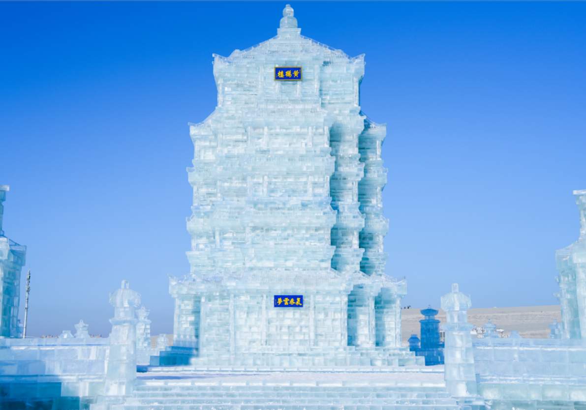 12月17日,在哈尔滨冰雪大世界园区,一座27.4米高的冰雕黄鹤楼拔地而起。夜幕降临时金光流转,琉璃生辉。若非旁边是松花江的坚冰,你几乎以为自己站在长江之畔。