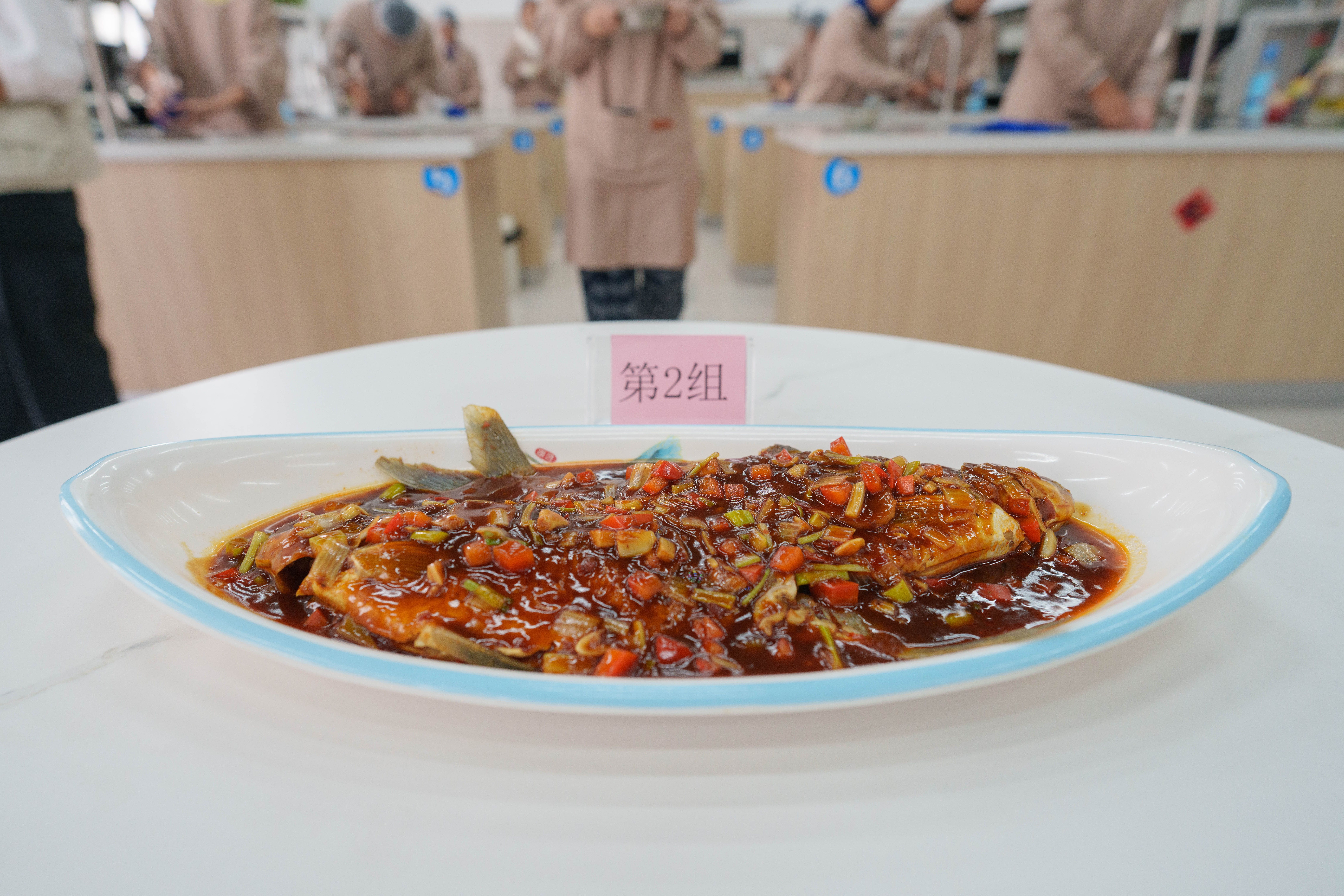 同学们制作的红烧武昌鱼。 刘芷郗 摄