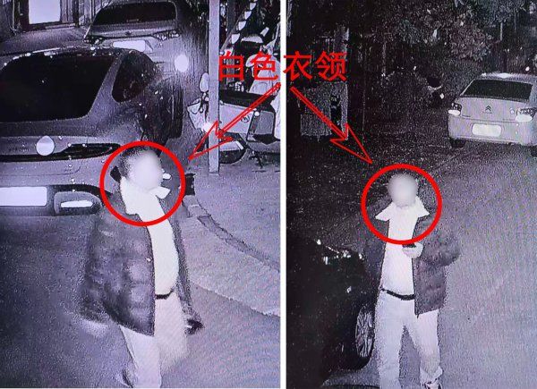 嫌疑人所穿羽绒服的衣领是白色的。 通讯员陈科先 摄。
