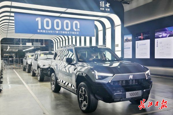 长江日报大武汉客户端12月26日讯 12月26日,位于武汉经开区的猛士科技智慧园总装工厂内热潮涌动。上午9点45分,一辆玉龙银色机甲雄狮般的猛士M817缓缓驶下生产线,大屏数字定格在“10000”。