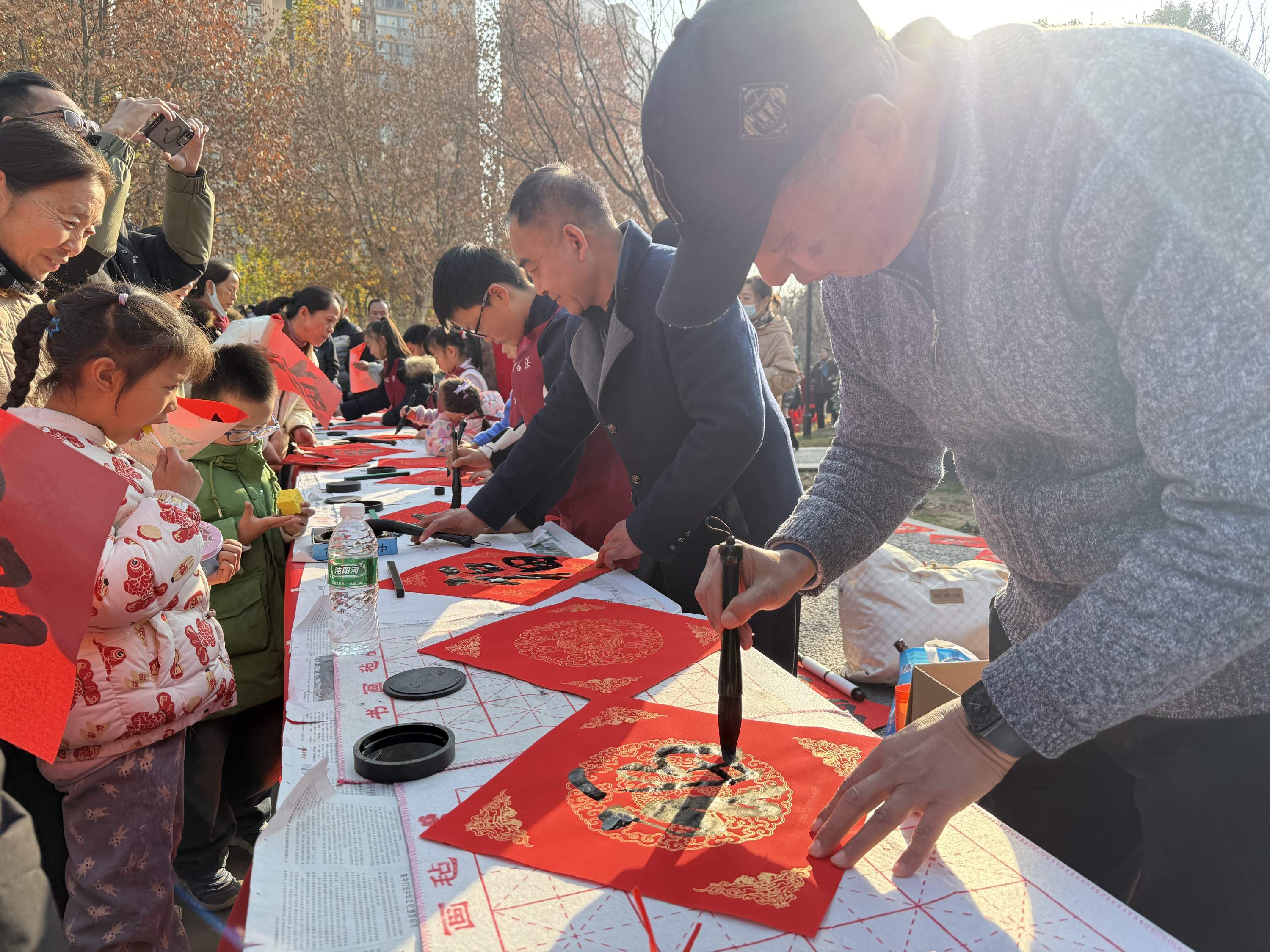 为进一步壮大多元共治力量,推动形成“人人参与、人人负责、人人奉献、人人共享”的共治格局,社区党委充分发挥桥梁纽带作用,邀请辖区书法爱好者、书法培训工作室负责老师及书法班小朋友们来到活动现场,开展新春“送”福活动。铺开红纸,蘸墨落笔,清雅墨香弥漫开来,一幅幅带着墨香的福字很快就出炉了。孩子们举着“作品”蹦跳着送给邻里:“奶奶新年好!福字送给您!”拿到福字的张奶奶笑着说:“这也写得太好了吧!谢谢你小朋友。”