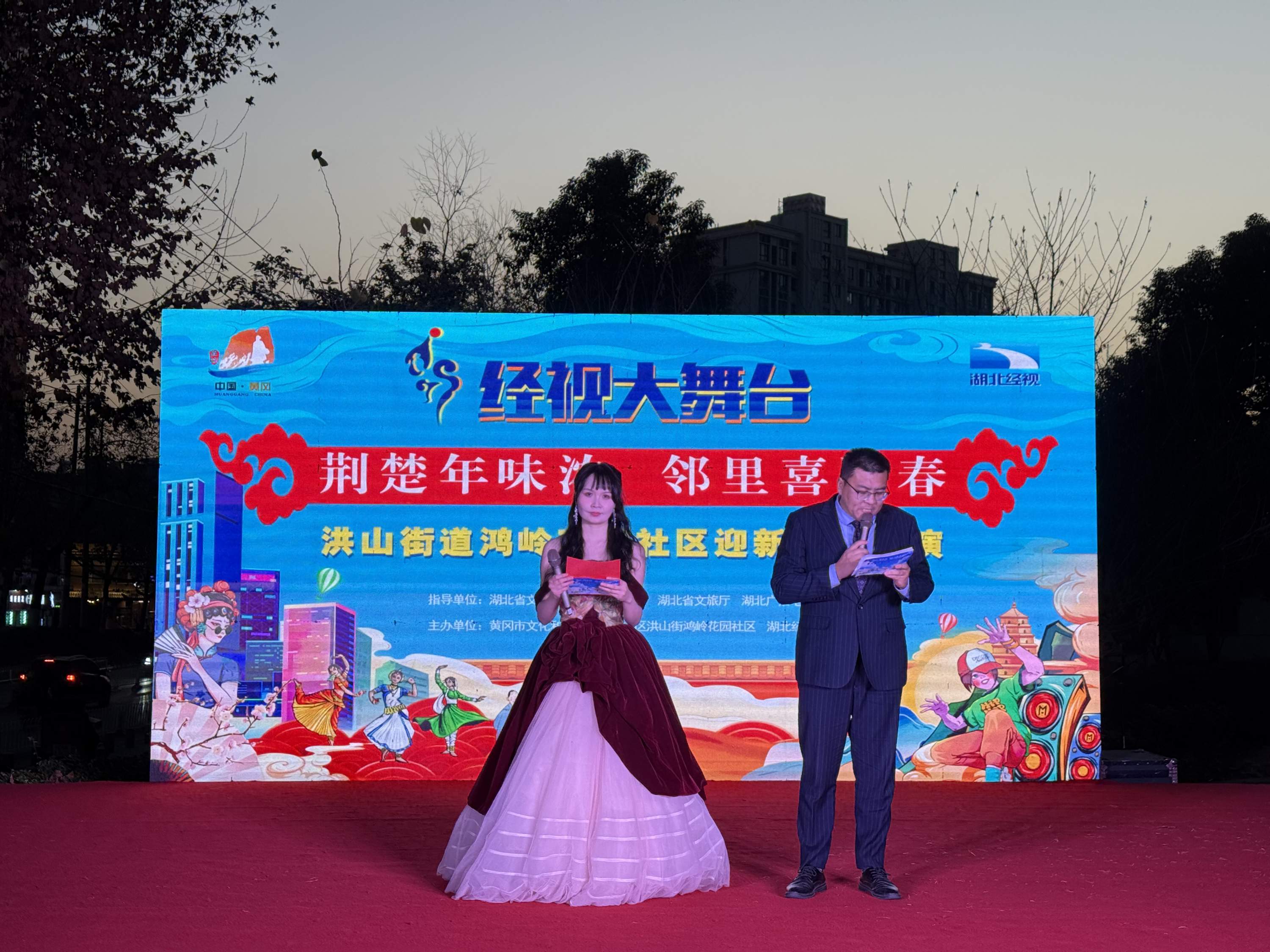 为丰富辖区居民精神文化生活,搭建邻里交流的平台,今天下午,鸿岭花园社区携手湖北经视、黄冈文旅共同举办“辞旧迎新・邻里欢歌”文艺汇演,与居民共庆元旦。