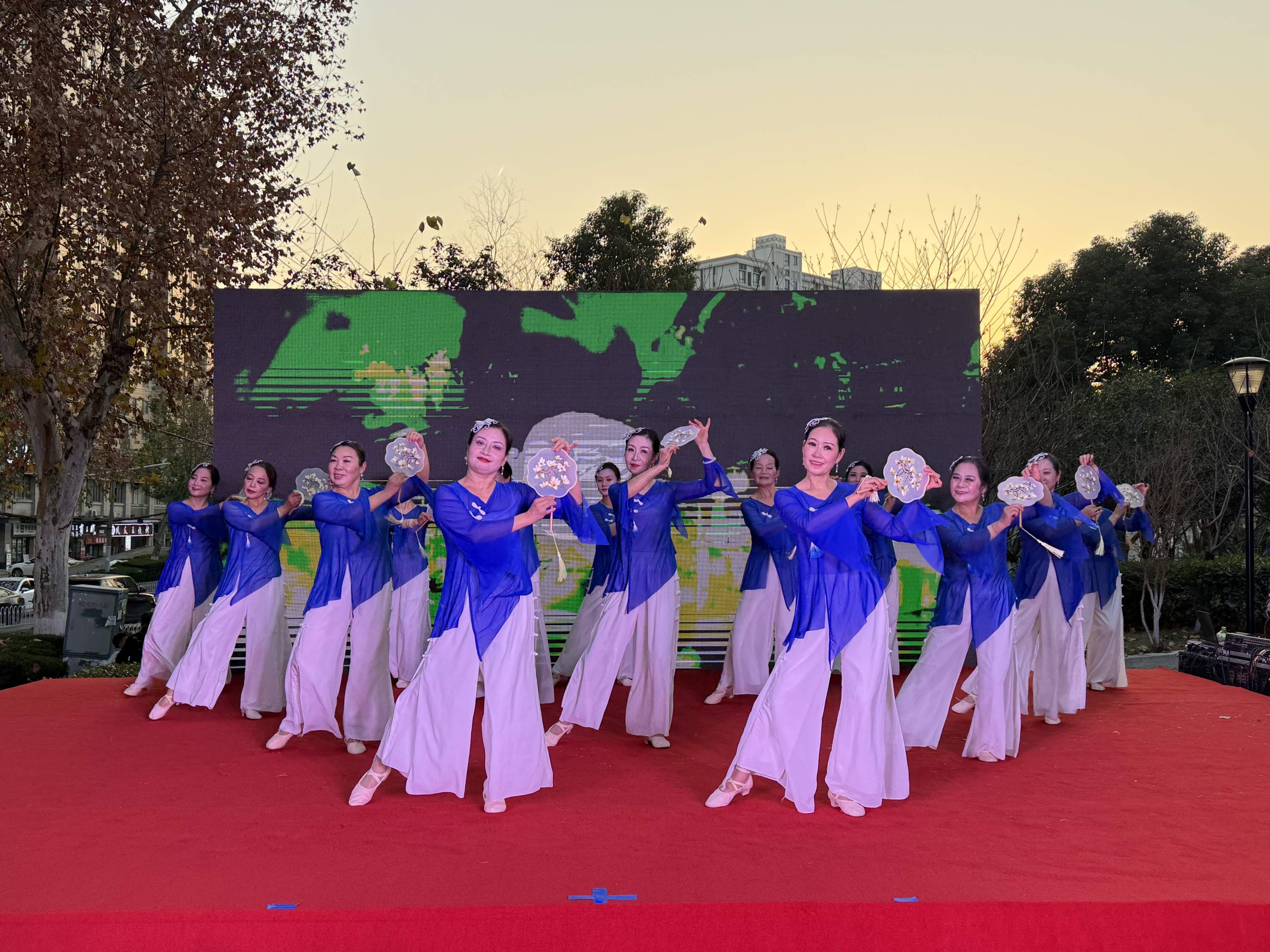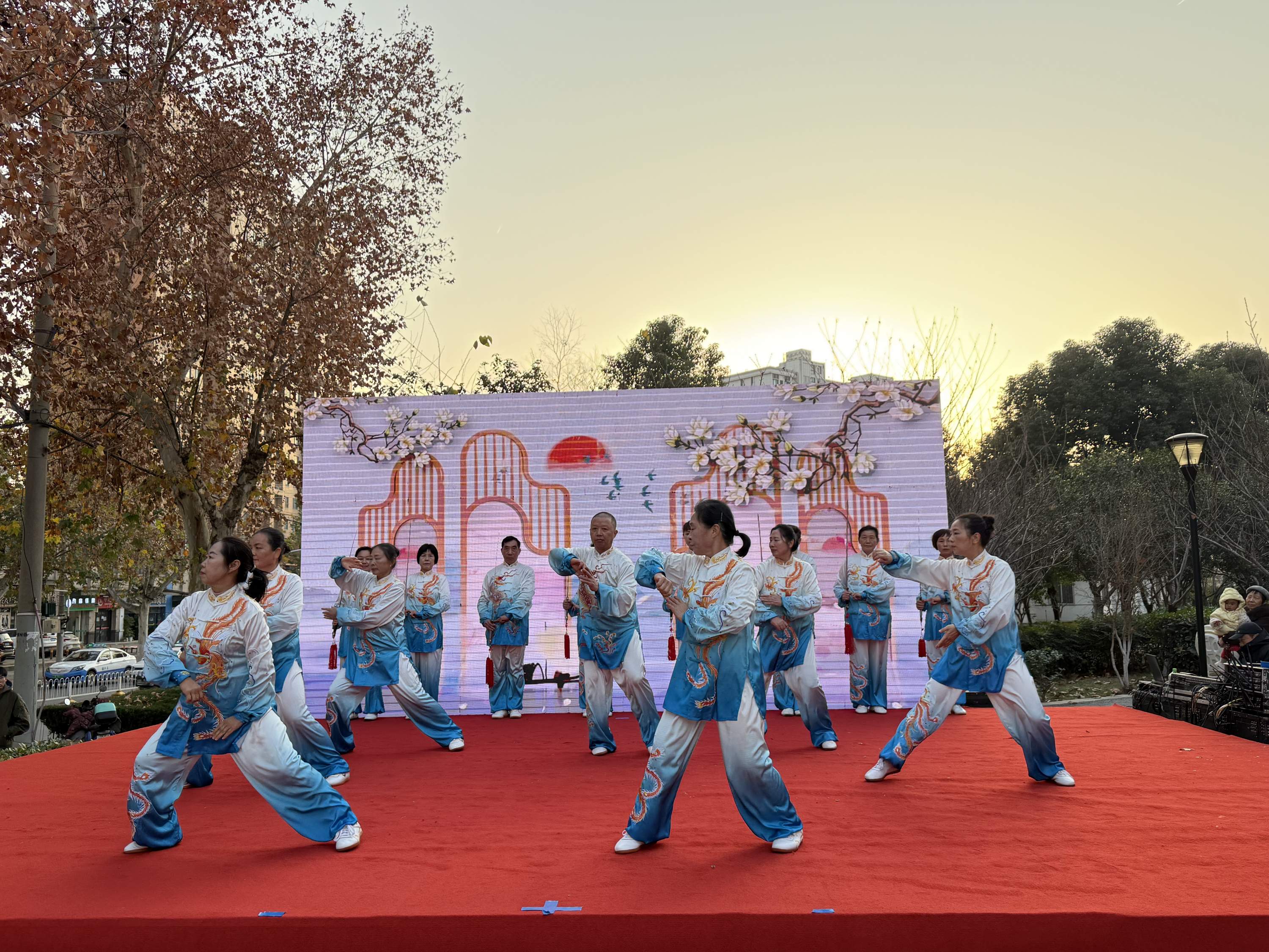 舞台上,辖区各文艺团队与居民骨干联袂献上的精彩节目轮番登场:腰鼓队的节奏点燃全场热情,社区舞蹈精英班带来秧歌舞《绿水青山》活力满满,太极剑班表演《太极神韵》刚柔并济,合唱班《幸福中国》嘹亮激昂,走秀班《女人的精彩》优雅自信……多样节目既展现了居民们良好的精神风貌,更集中呈现了社区教育的成果。自2023年开展“师匠计划”以来,社区“鸿鹄学社”成人班持续培育文艺骨干,他们以传帮带凝聚居民,有效提升了居民对社区的认同感。