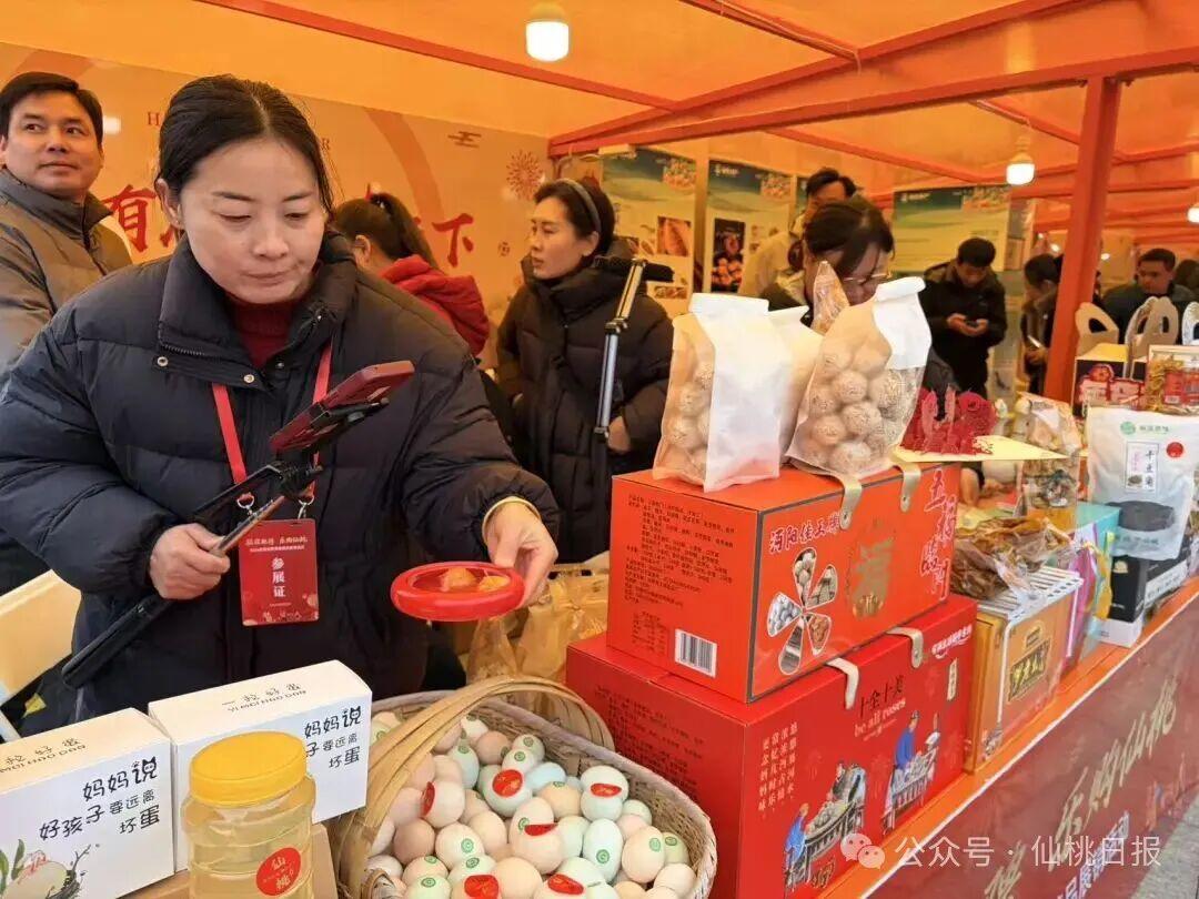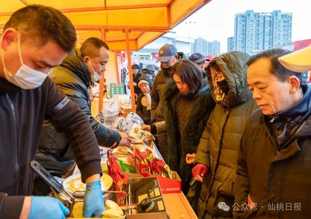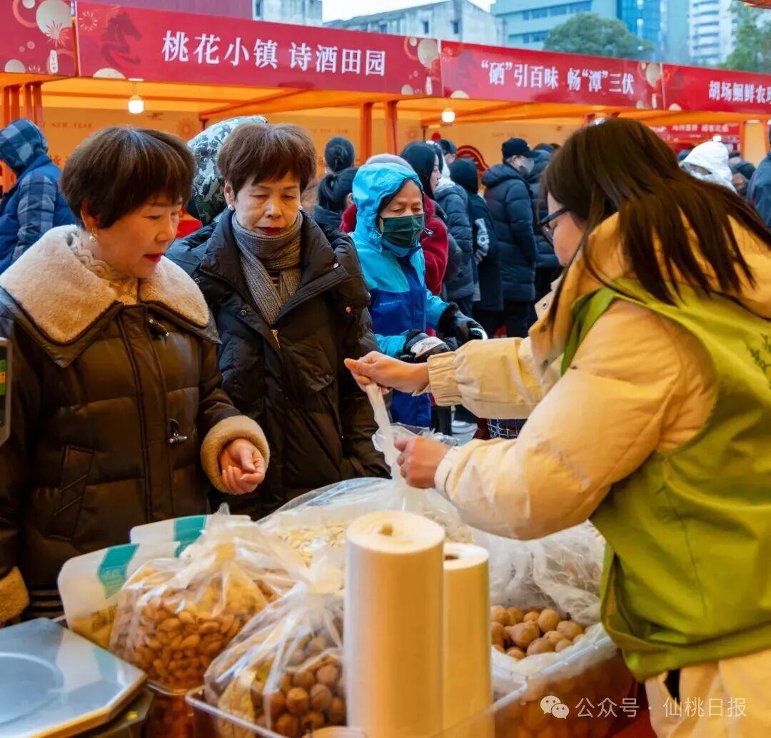 “仙滋鲜味”精品亮相、张沟黄鳝锁鲜美味、胡场鮰鲜农珍上新、排湖大闸蟹新鲜可口、桃花小镇诗酒田园、郑场硒品豆豉飘香、沙湖蛋乡引人入胜……主打品特产、寻年味,农特产品展销区共有四大类24个特色展位,立足“一镇一品”特色,多点开花、福利实惠,满足市民年货采购需求。