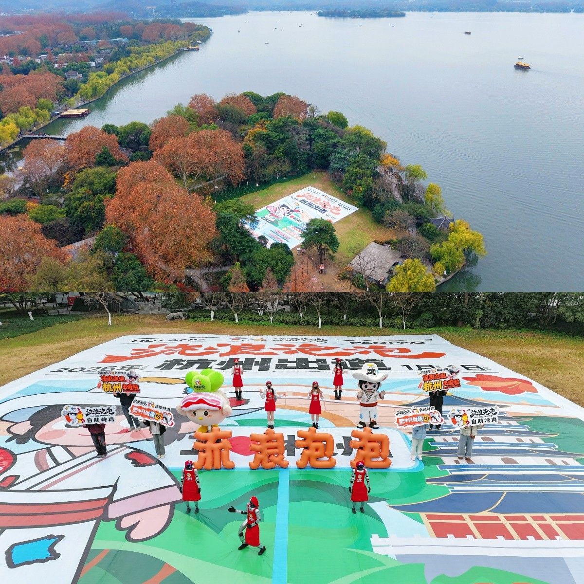 2.西湖1000㎡巨幅“报纸头条”:城市地标绑定IP出圈