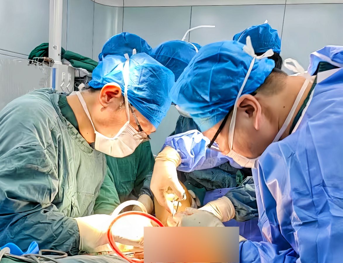 骨盆被称为“生命禁区”,结构复杂且密布重要血管神经,肿瘤切除如同“雷区排爆”,术后重建堪比“桥梁再造”。专家团队制定精密方案,利用孙女士的CT/MRI数据,1:1打印骨盆模型并反复演练,定制钛合金人工半骨盆假体;多学科团队联合护航,手术日,由刘建湘、钱亮领衔,联合麻醉科、重症医学科、肿瘤科、输血科、介入科、病理科等多学科专家为手术安全上了“多重保险”;术中毫米级精准游离组织,完整切除肿瘤并保护神经血管,成功植入假体重建“承重轴”。