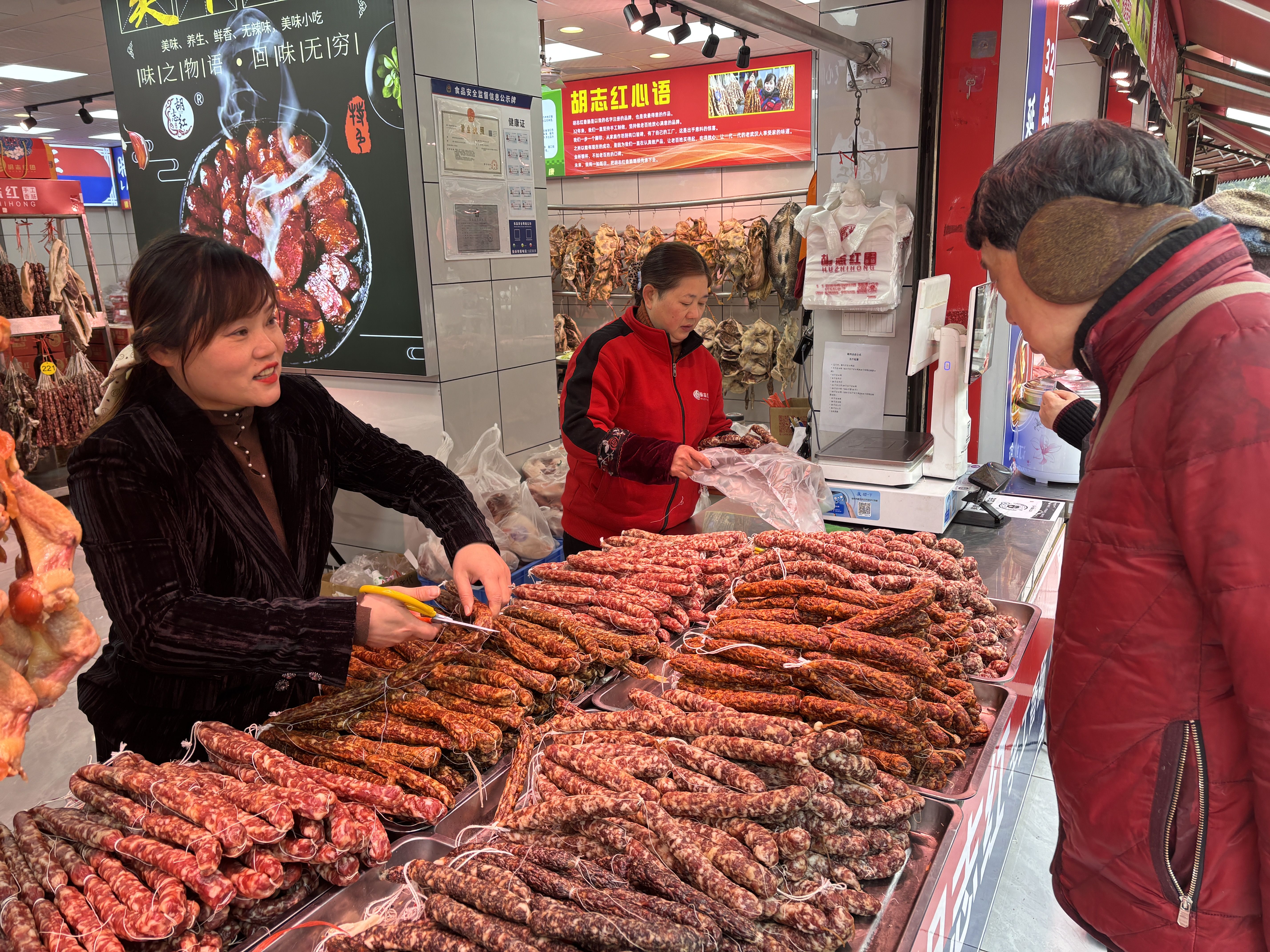 长江日报大武汉客户端1月13日讯(记者耿珊珊)临近年关,古田三路易农街上的一家手工香肠门店客流如织,数十种口味的香肠、腊鸭、腊肉等冬令食品正销。