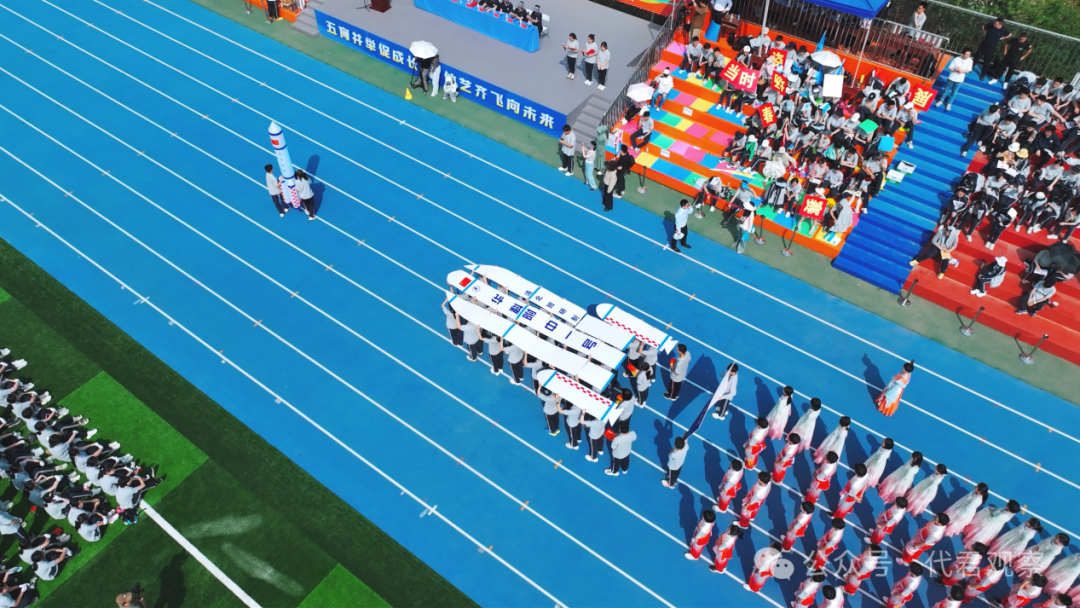 ▲华科附中2025年春季运动会开幕式上,高一清北班别出心裁,来了场“卫星发射”