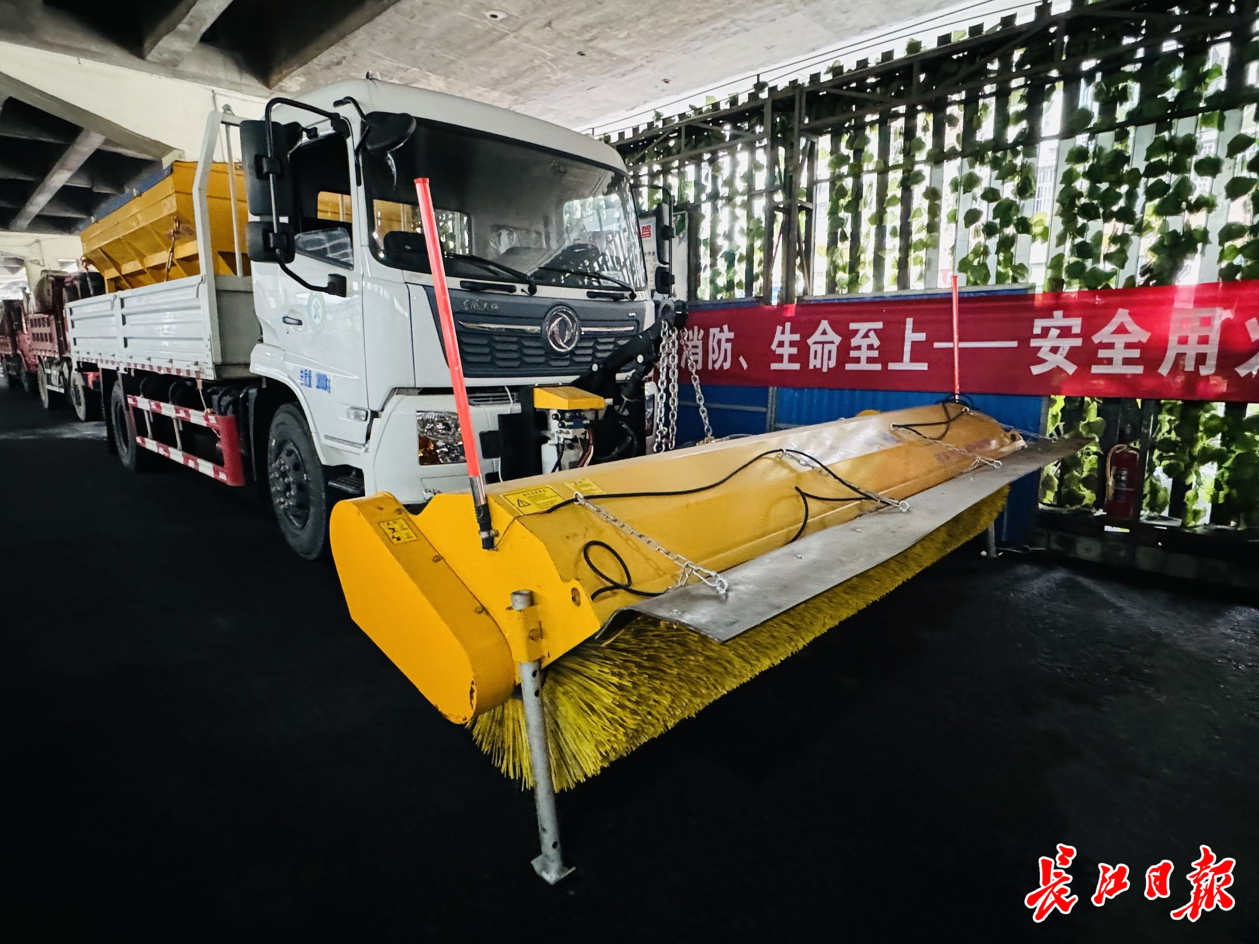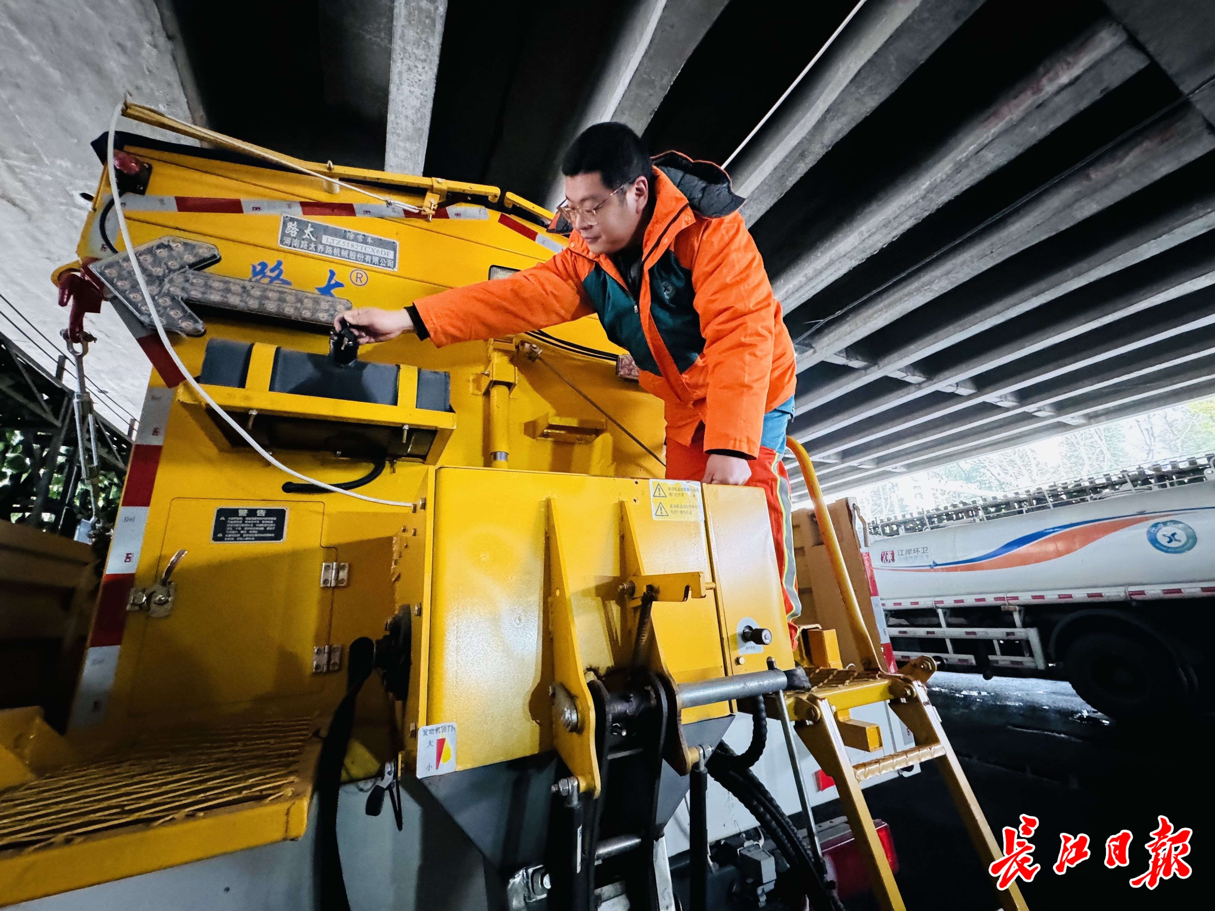 “这是今年新增的一台除雪设备——融雪剂撒布和除雪滚一体机,可以实现‘前清后撒’。”江岸环卫集团清洗公司班长魏亚超向记者介绍,它单次可装载8立方米融雪剂,一次性加满可覆盖7公里作业路段,无需频繁往返补给,大幅提升除雪效率。