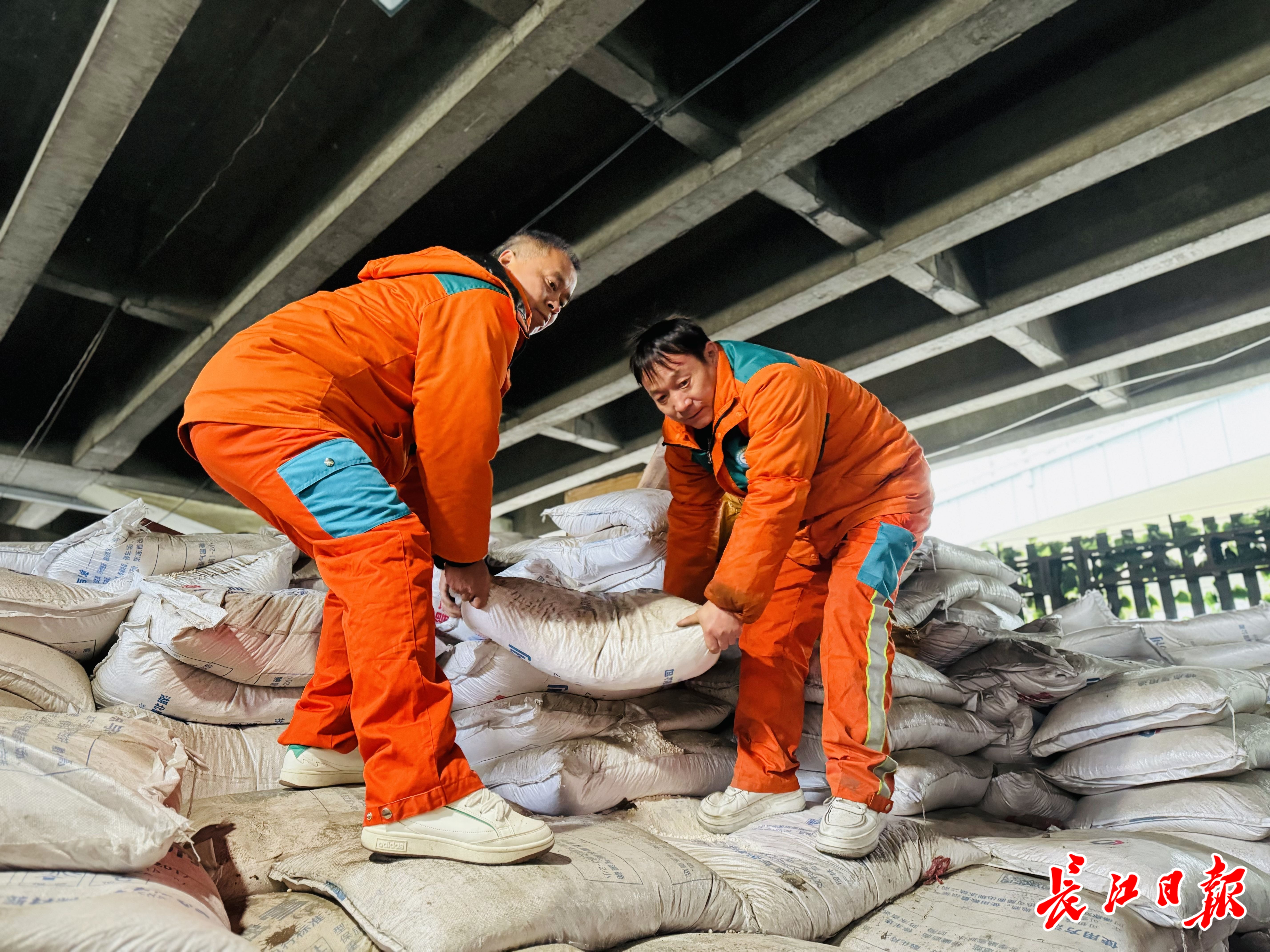 随后,记者来到位于解放大道的江岸区融雪防冻应急中心,工作人员正加紧清点和归集各类防雪应急物资。目前,江岸环卫部门已储备融雪剂790吨、草垫与麻袋12000个、人工除雪铲900余把。所有物资均实现分类存放、专人管理,确保关键时刻调得出、用得上。