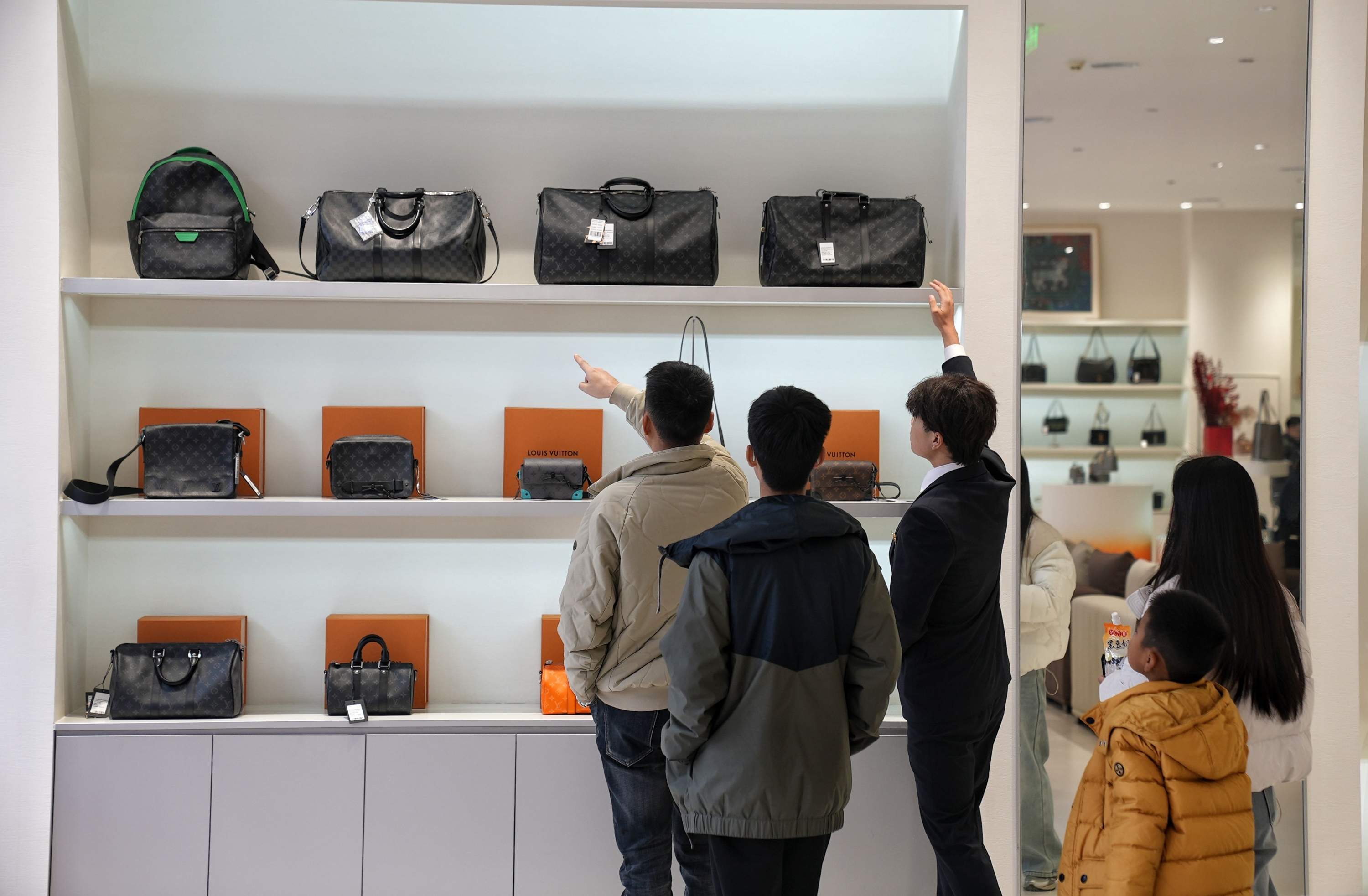 高性价比的名品男包,吸引了多位消费者。