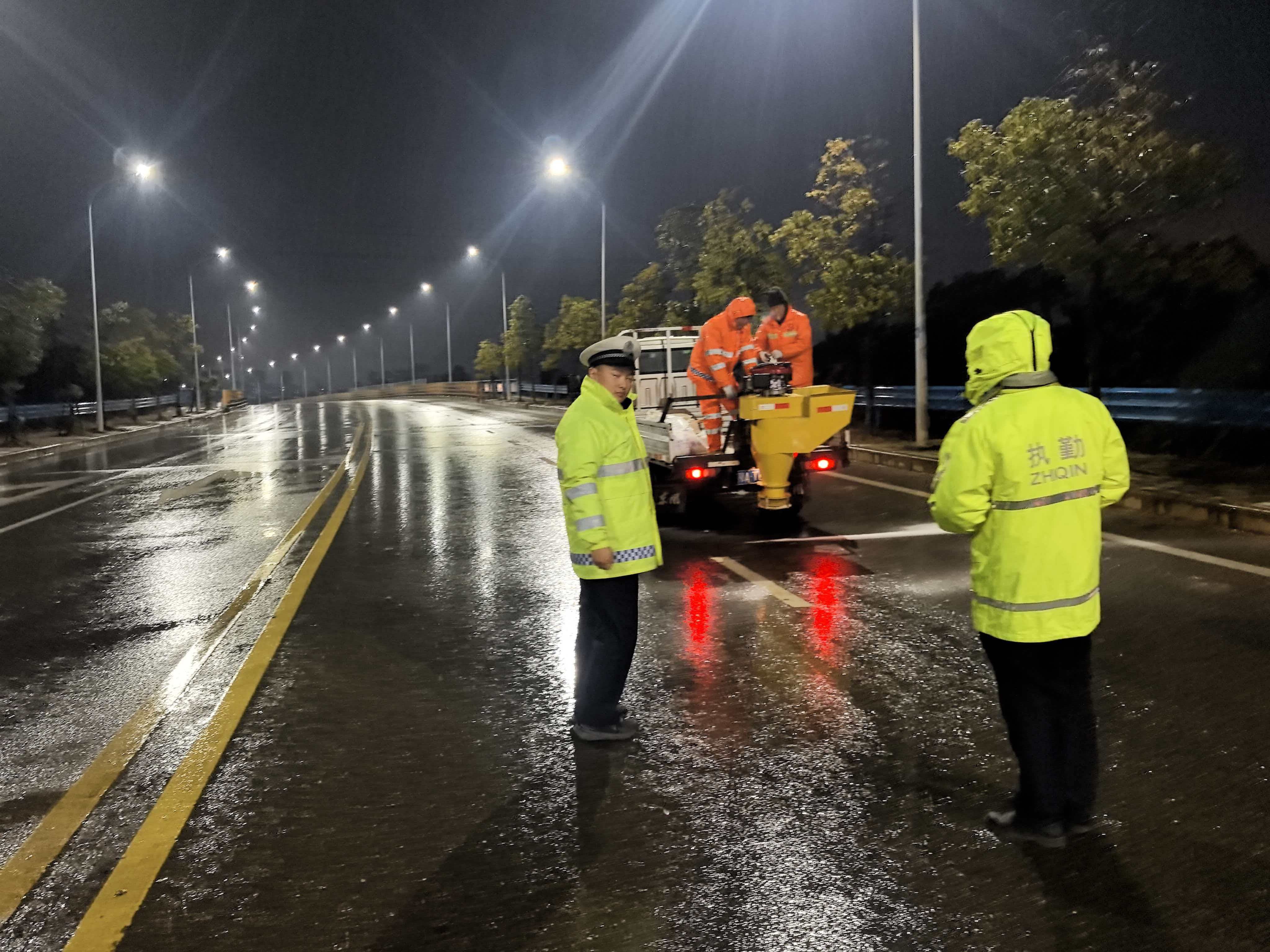 此外,全市交管部门实现联动,确保物资到位,机制畅通,守护贯穿始终。全市公安交管部门已提前储备并布设足量融雪剂、防滑草垫等应急物资。各大队均与属地城管、环卫、水务、应急等部门建立了紧密的联勤联动机制,确保在雪情冰情发生时,能够迅速协同开展清雪除冰作业,提升整体处置效能。为保障全市路网,特别是高速路、快速环线的安全畅通,高管大队联合路政、养护等部门,对四环线、机场高速、武大高速、武深高速等重要通道开展全方位、不间断的融雪剂撒布与机械除冰作业,昼夜奋战,严防路面结冰。同时,强化全路段不间断巡逻,一旦发现积雪结冰隐患,立即通过联勤机制调度处置,并对过往车辆进行安全提示。
