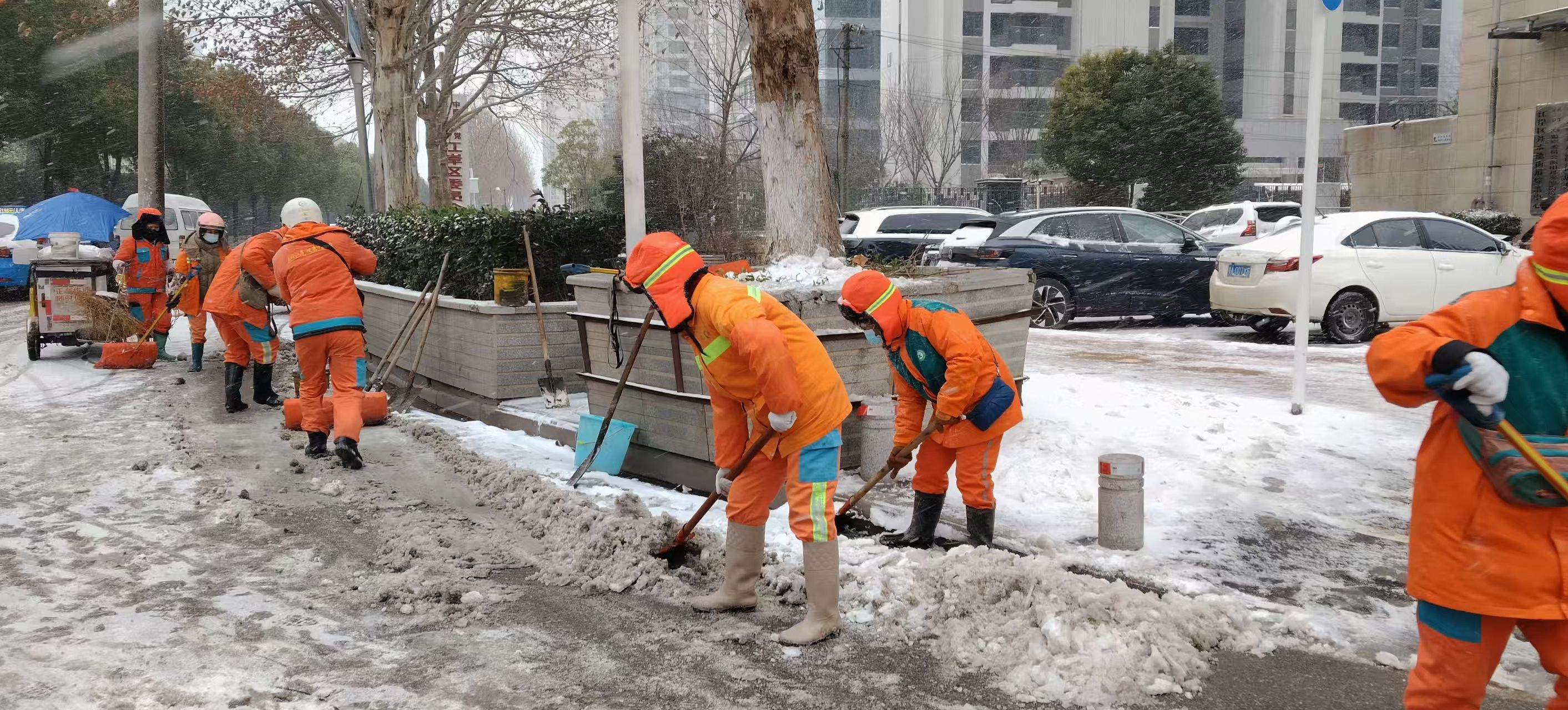 在解放大道兴业路口、建设大道科技馆段、工农兵路,一群群身着橙色衣服的环卫工人排成楔形阵势向前推进,冰屑在晨光中迸飞,铁锹过处露出黑色柏油路面。路过此地的行人张军感叹,“这些破冰的每一声脆响,都是温暖的城市心跳”。