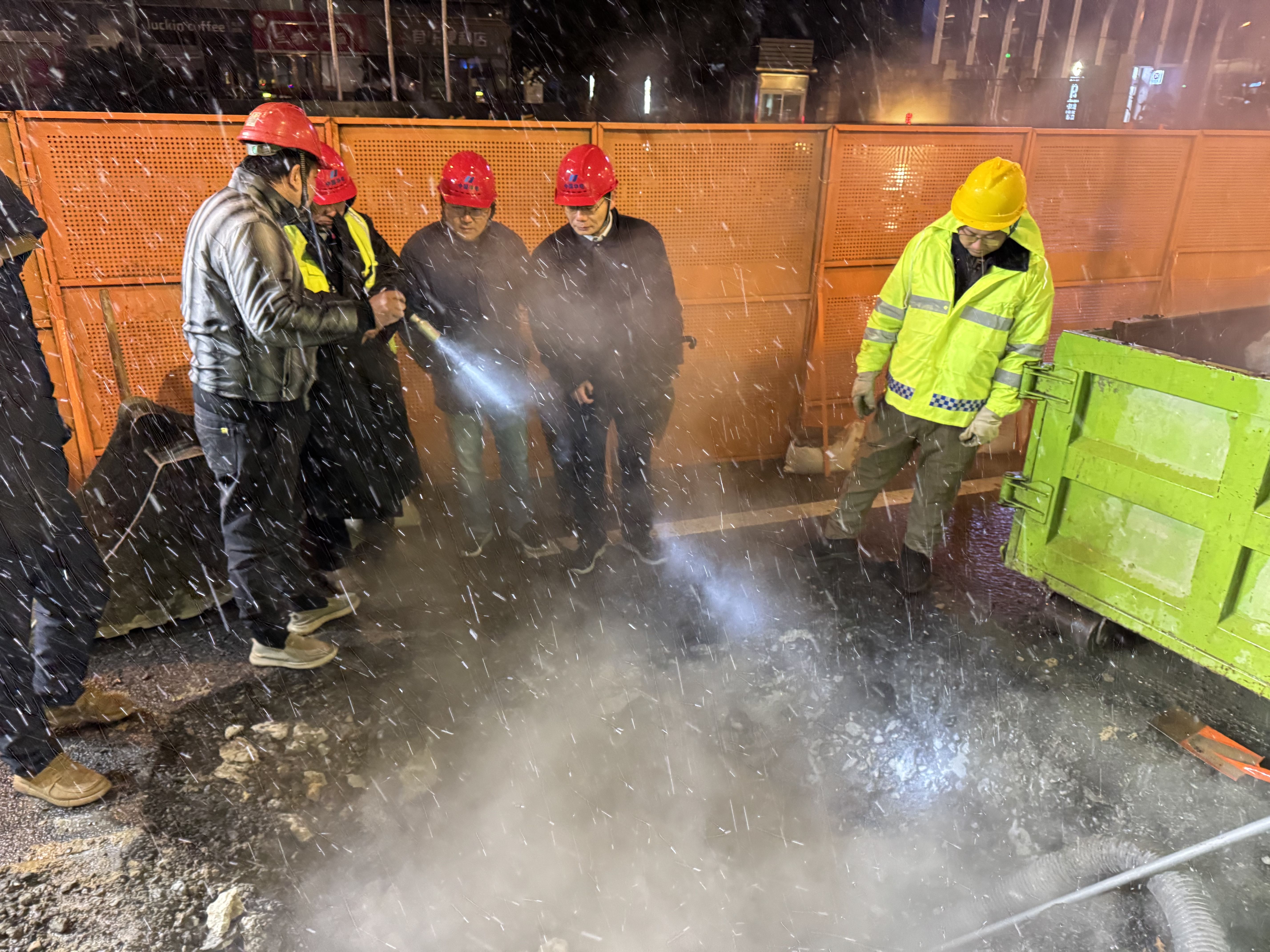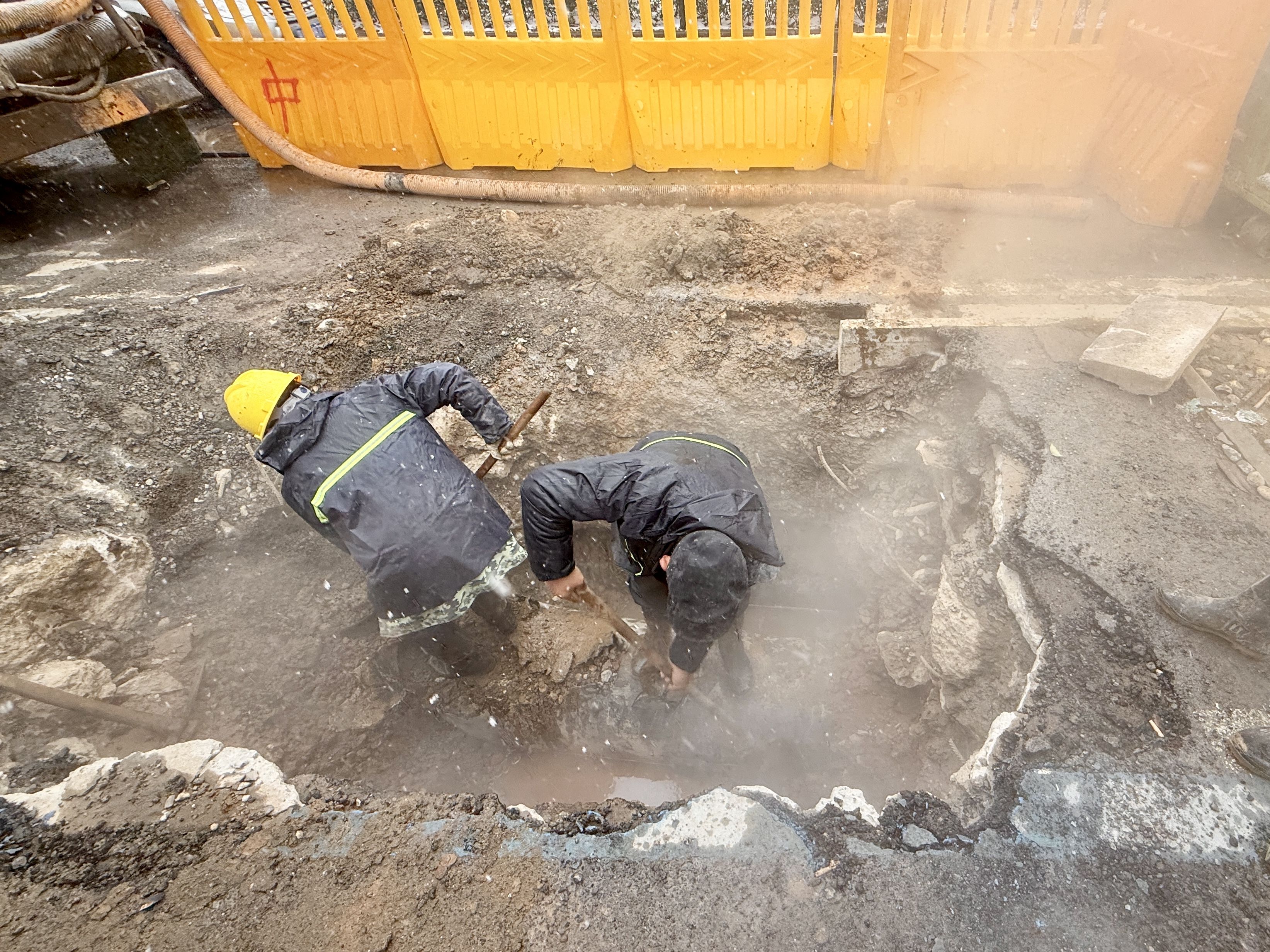 1月19日上午,刺骨的寒风卷着湿气,预示着雨雪冰冻天气即将到来。就在这个节骨眼上,华电武昌公司供热巡检人员发现异常:中北路家盛时代城市生活广场的一处路面出现积水、不断有白色蒸汽从地缝中涌出。“坏了!这恐怕是供热管网发生泄漏了!”巡检人员的心猛地一沉,寒潮叠加泄漏,这“暖流”如同周边1.5万户居民的供暖“生命线”。这要是断了,周边居民怎么取暖?