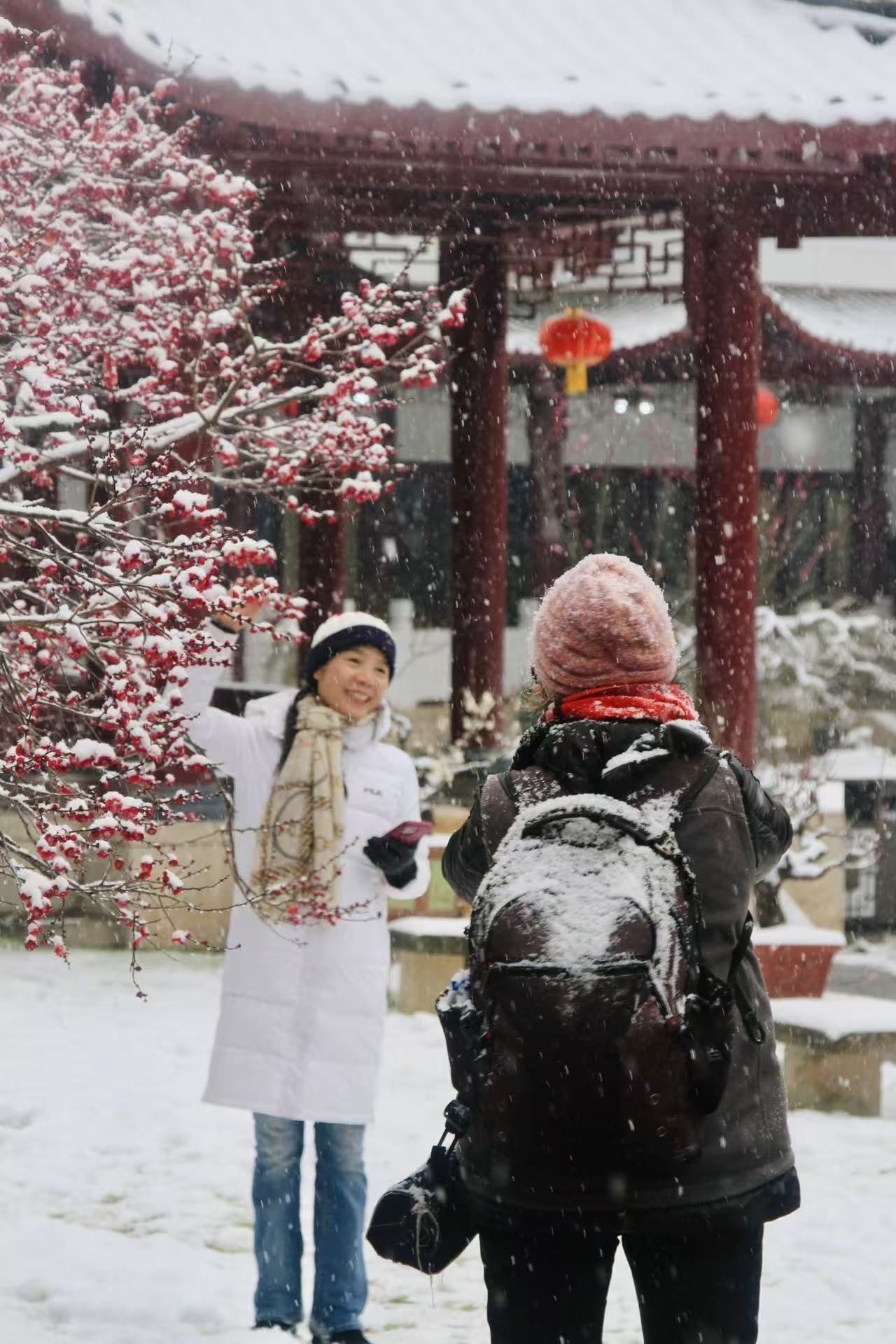 “为了这组梅雪大片,我早上一开园就来了!”摄影爱好者宁宇翔,也是东湖梅园的“常客”,他的镜头里记录了连续四年的东湖梅园景致。“百年古梅的虬枝裹着积雪,搭配早梅的粉嫩花瓣,光影层次特别丰富。曲枝的线条感也与白雪的厚重感形成强烈对比,古风韵味直接拉满。”宁宇翔边展示着自己作品边介绍,“每年雪后,武汉摄影爱好者都会聚集到这里,东湖梅园的梅品种全、树形美,再配上湖光山色,是无可替代的拍摄地。”