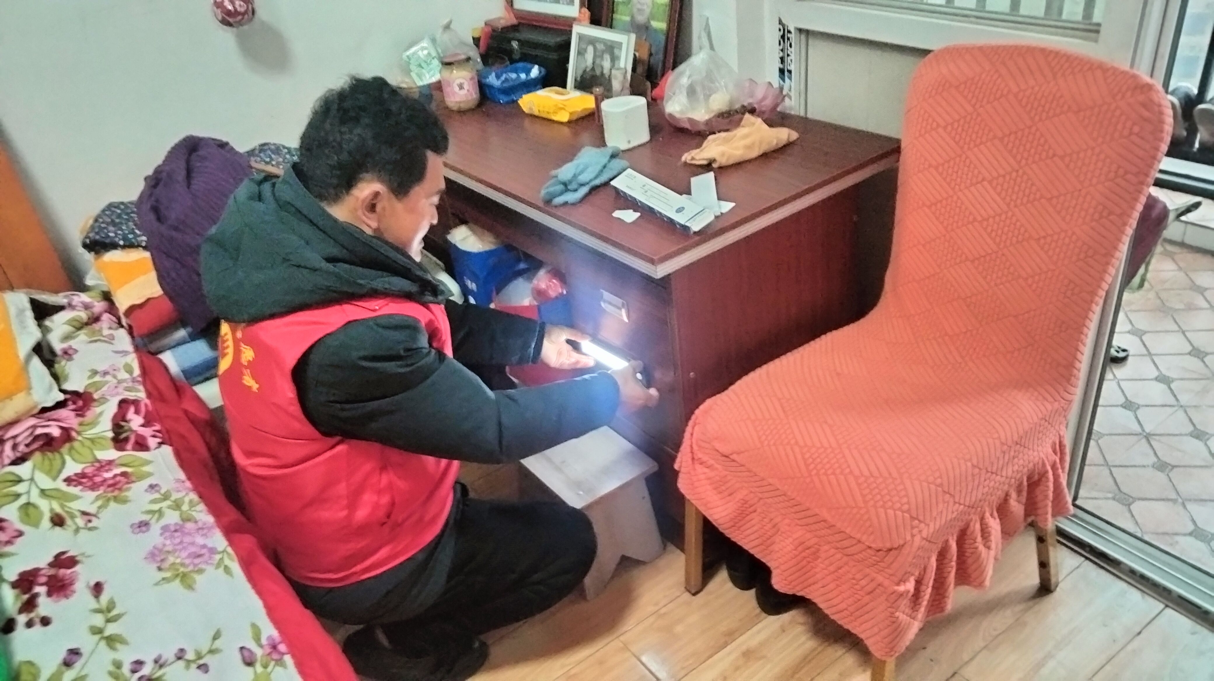 志愿者们按照老人的需求选定位置,小心翼翼地固定并调试夜灯,反复调整灯光角度,确保灯光既不刺眼影响休息,又能全方位守护起夜安全。