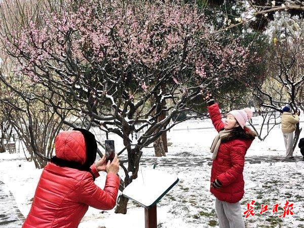 长江日报大武汉客户端1月20日讯 “梅须逊雪三分白,雪却输梅一段香。”1月20日,武汉迎来今冬首场大雪。到公园踏雪寻梅,赏花拍照,成为市民的赏心乐事。