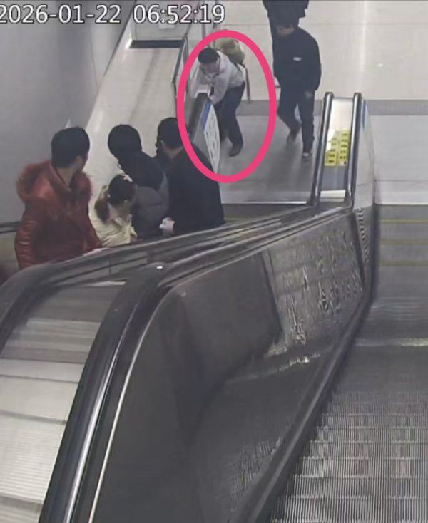 1月22日,一名老人在地铁站乘坐扶梯时不慎摔倒。发现险情后,正在上班途中的轨道辅警迅速反应,快速按停扶梯,成功救下老人。