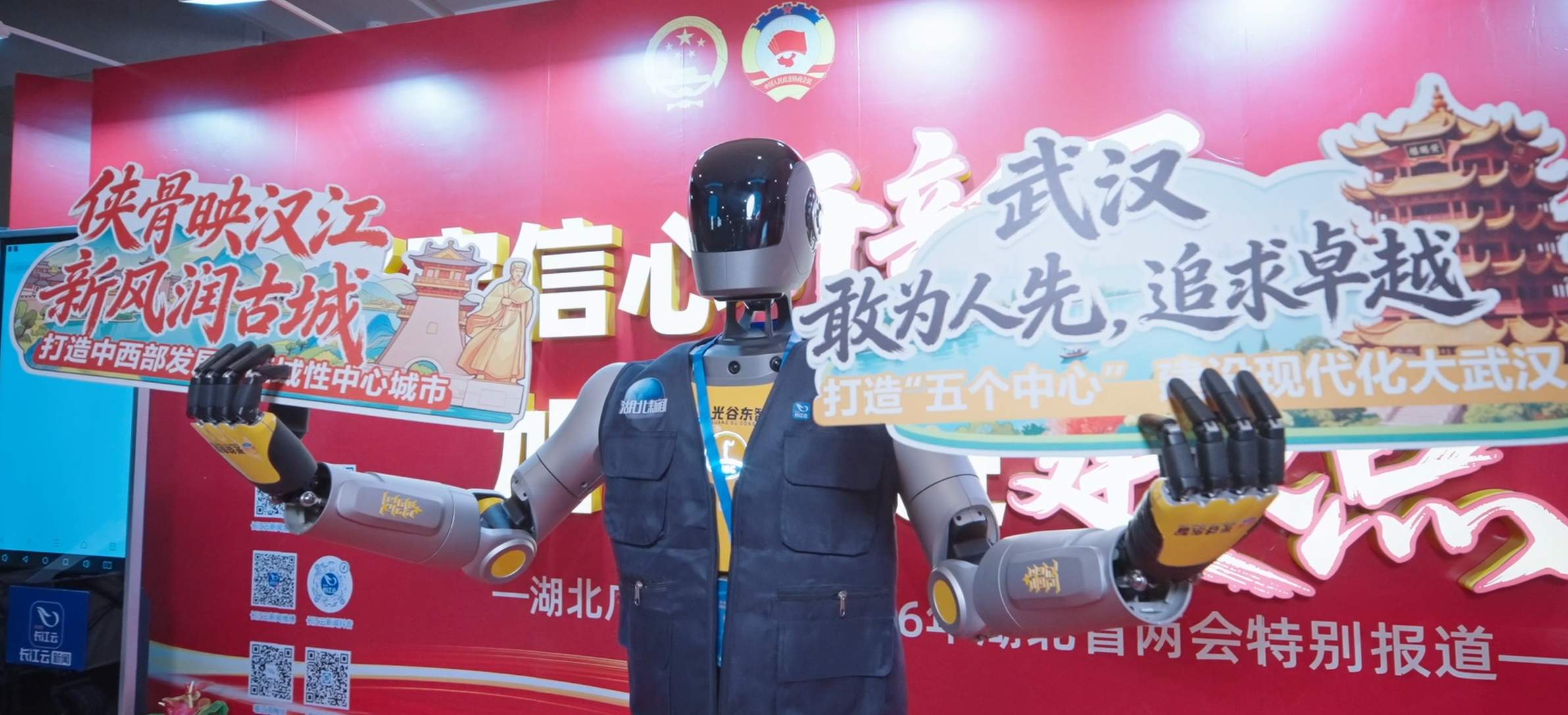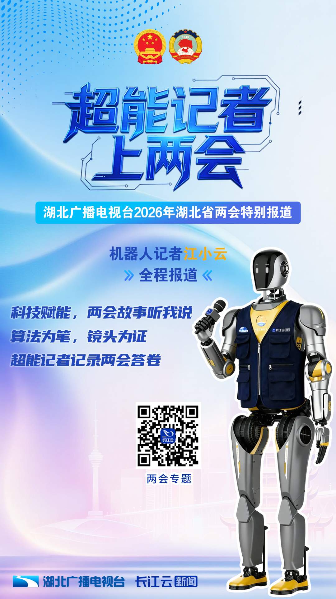 佩戴两会记者证、手持湖北台话筒、身穿采访制服、双目蓝光微闪……这个拥有Ai大脑的硅基记者有哪些超能力?来,一起先睹为快!