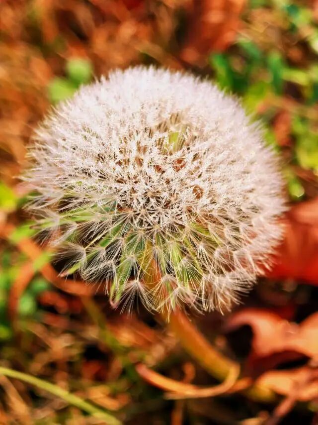 路边的那棵蒲公英,这个由无数根洁白的纤羽组成的毛茸茸绣球,历经严寒的冬夜,却分外惊艳。每根纤羽的末端都缀满了晶莹剔透的小粒珍珠般的霜晶,蒲公英宛如穿上了一件璀璨的水晶礼服。