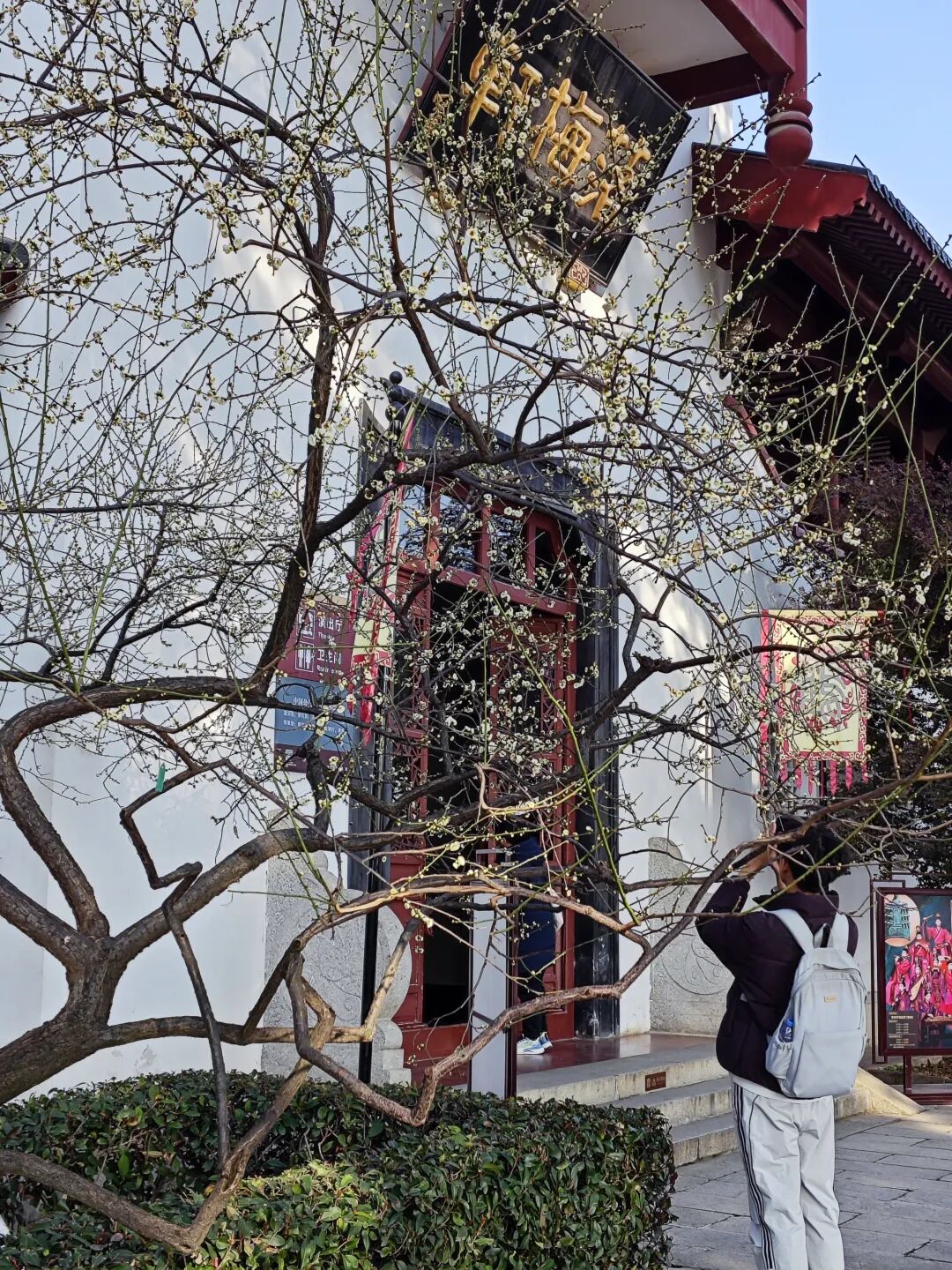 落梅轩前的绿萼梅,攒着素白花苞,虬曲枝丫斜斜探向朱门,像在等待一缕穿越千年的笛音。
