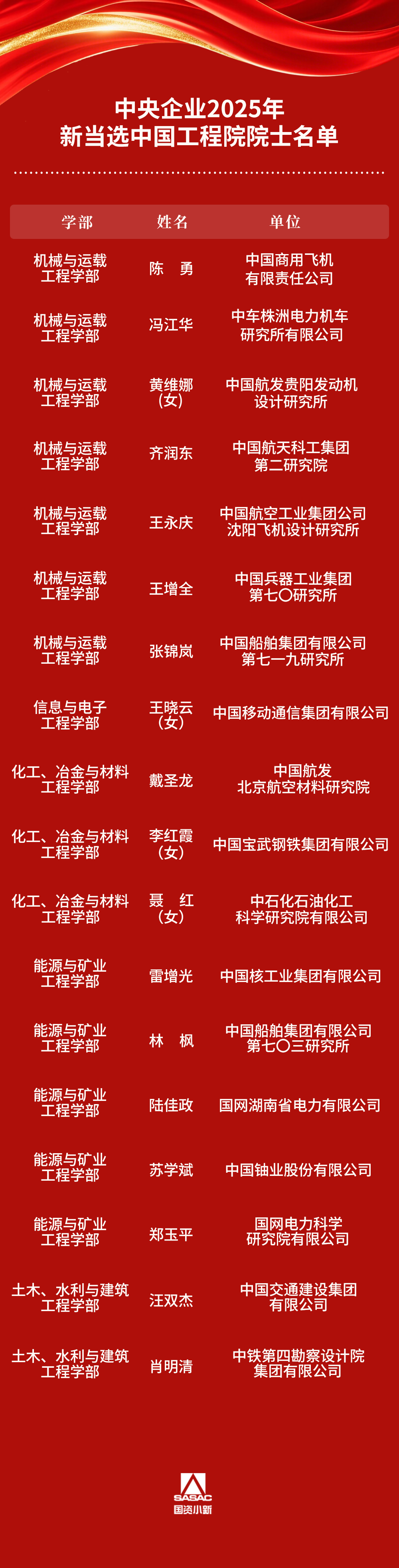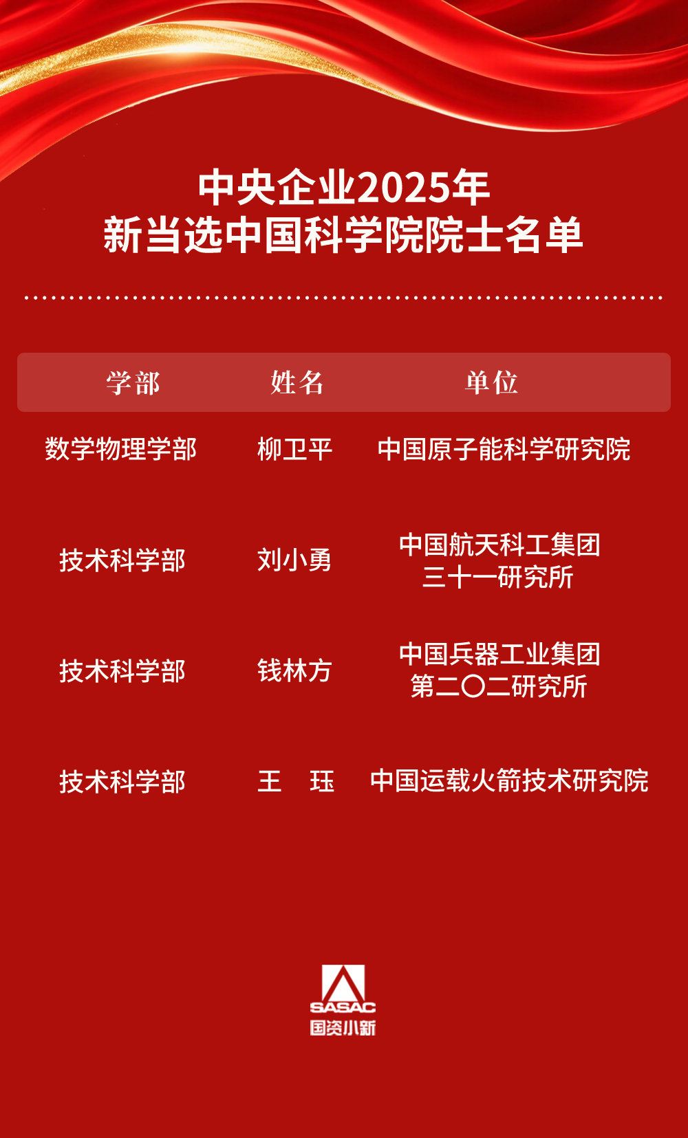 2025年,央企牵头或参与全部22个国家重大科技专项,攻克领跑技术121项,拥有研发人员144万人、占全国1/5,两院院士238人、占全国13%;累计建设了474个国家级研发平台,重组入列91个全国重点实验室,牵头新建了2个国家技术创新中心。