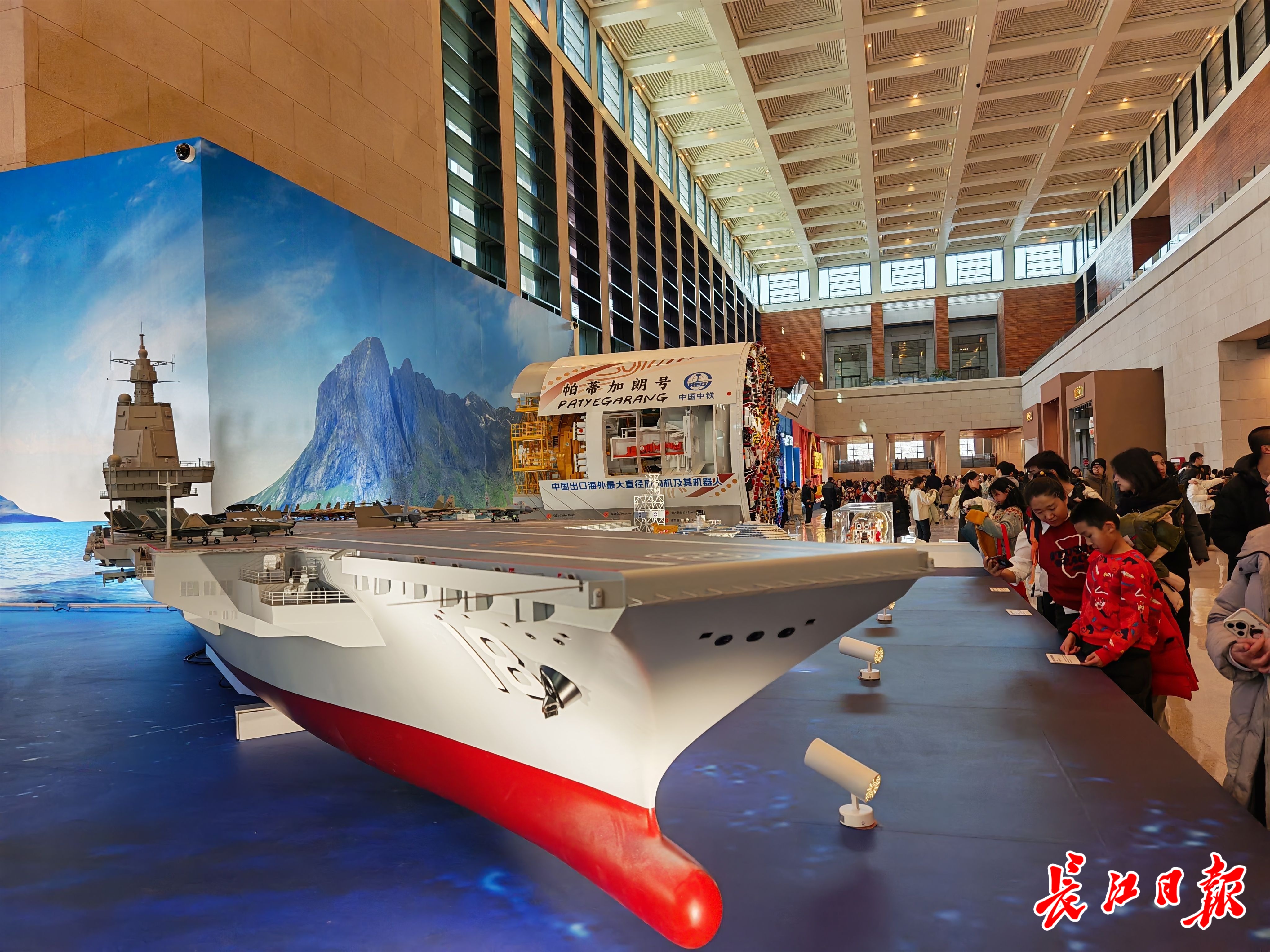 正在国家博物馆展出的福建舰等大国重器模型备受关注。记者柯丽芬 摄