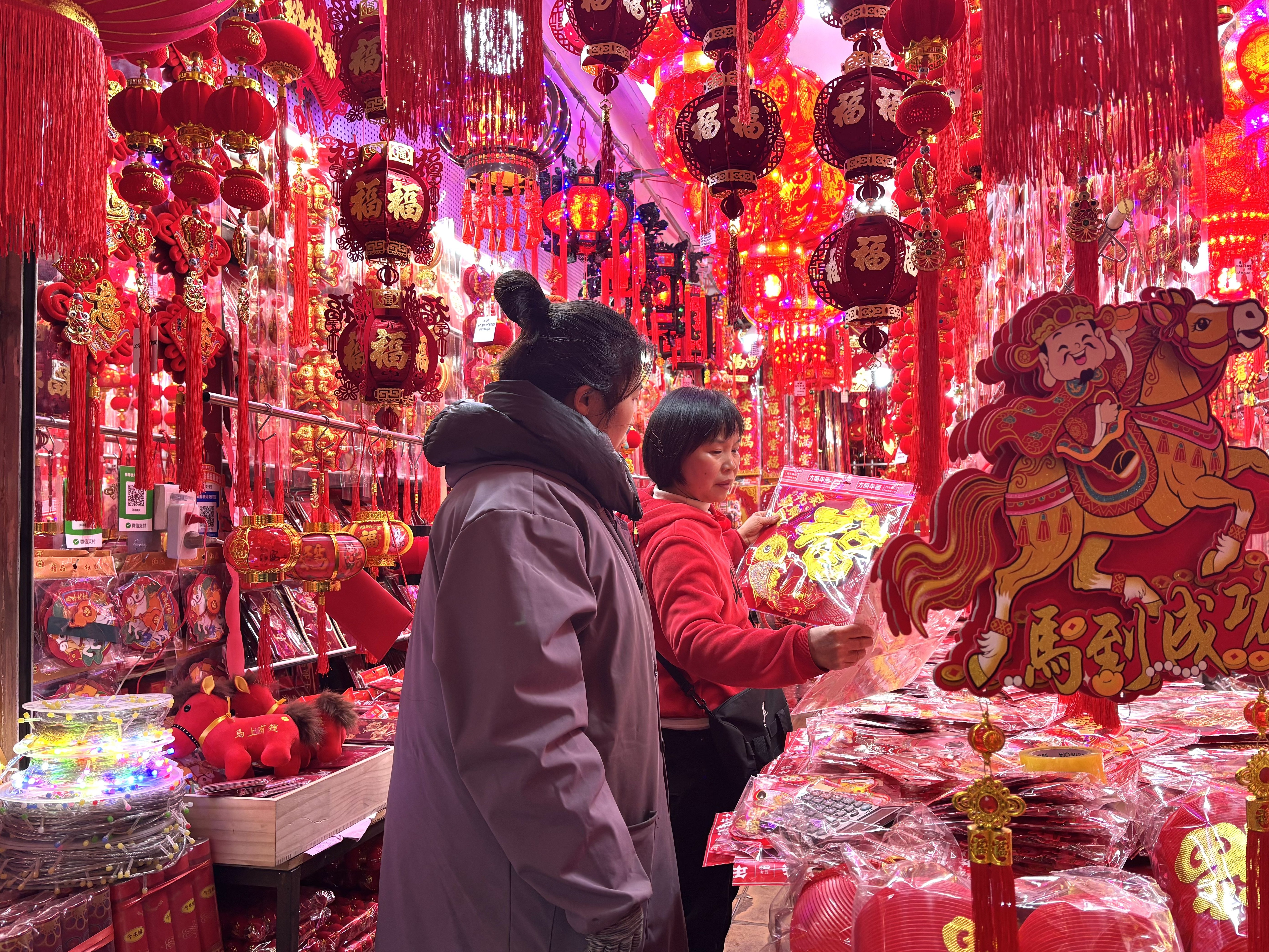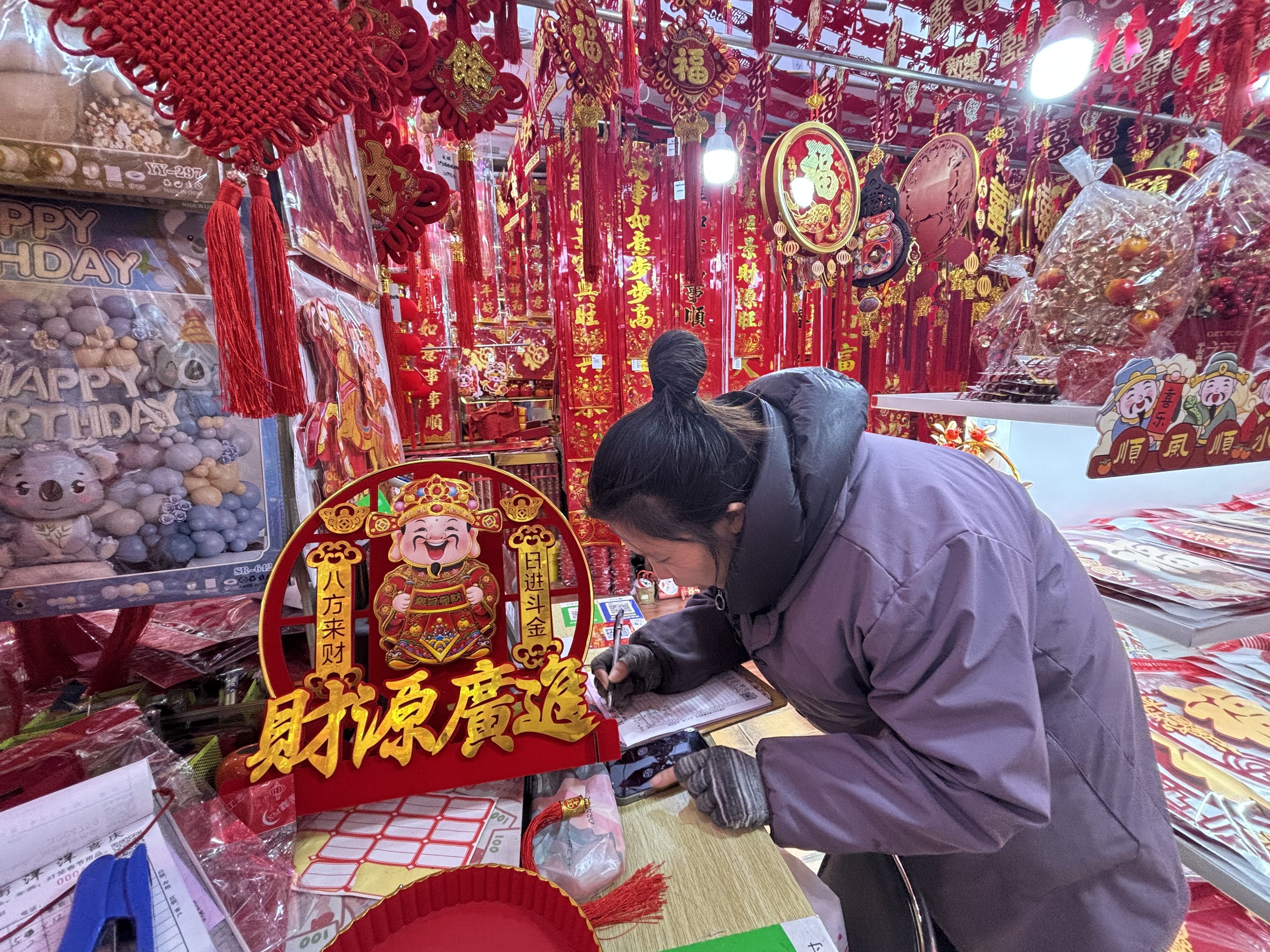 “马年寓意好,今年印有‘马到成功’‘一马当先’等吉祥语的春联及衍生品,销量比去年同期增长约三成,大家尤其青睐设计新颖的马年生肖主题商品。”杨桃笑着说,去年10月门店就开始订货,12月中旬开卖。之前进的1万多个马元素饰品,现在都快卖空了。店里8名员工,每天从早上6点忙到晚上10点,“三餐不定时,上厕所都得小跑”。